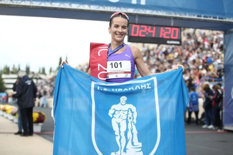 Η Σταματίνα Νούλα, και αυτή αθλήτρια του Ν.Γ.Σ. Ηρακλής, ήταν η δρομέας που πέρασε πρώτη τη γραμμή του τερματισμού.