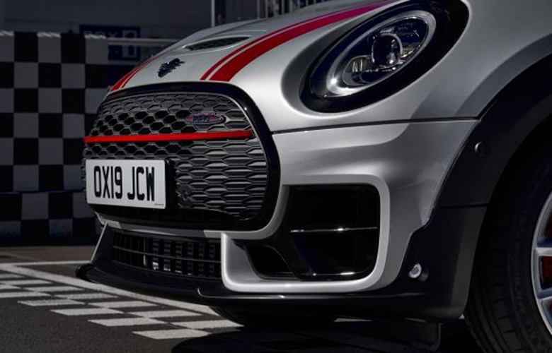 Άλλες ξεχωριστές πινελιές στο εξωτερικό περιλαμβάνουν την προαιρετική κόκκινη απόχρωση της οροφής και των καλυμμάτων καθρεπτών για τη δημιουργία αντιθέσεων, μία εξατομικευμένη σχεδίαση για τα πλευρικά φινιστρίνια με τα ενσωματωμένα φλας, και το λογότυπο JCW στη μάσκα και την πίσω πόρτα. Ο κεντρικός αεραγωγός και των δύο μοντέλων έχει κυψελοειδή δομή. Η εισαγωγή του JCW Countryman φέρει επίσης κόκκινο πλαίσιο, ενώ μία εγκάρσια κόκκινη μπάρα διαιρεί τη μάσκα του νέου JCW Clubman. Οι προβολείς, τα πίσω φώτα και η πίσω ποδιά, αποτυπώνουν επίσης την ανανεωμένη σχεδιαστική φιλοσοφία του νέου Clubman.