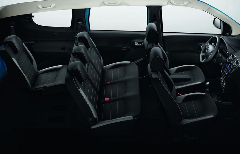 Το Lodgy διατίθεται αποκλειστικά ως 7θέσιο, με διάταξη καθισμάτων 2/3/2. Στο εσωτερικό του, η μεσαία σειρά μπορεί να φιλοξενήσει άνετα 3 επιβάτες, ενώ η 3η σειρά καθισμάτων μπορεί να φιλοξενήσει ακόμα δύο, παρέχοντάς τους άνετη μετακίνηση (χώρος για γόνατα 144 χλστ.). Ωστόσο, το μεγάλο πλεονέκτημα του, είναι η μεγάλη δυνατότητα διαμόρφωσης, ανάλογα με τις ανάγκες. Έτσι, στην 7θέσια διάταξη ο χώρος αποσκευών διαμορφώνεται στα 207 λίτρα. Με την αφαίρεση των δύο πίσω καθισμάτων, που μπορεί να γίνει και τμηματικά, ο χώρος αποσκευών μεγαλώνει στα 634 λίτρα, ενώ, με την πλήρη αναδίπλωση της 2ης σειράς καθισμάτων, η συνολική χωρητικότητα αγγίζει τα 1861 λίτρα. Ακόμα 12 αποθηκευτικοί χώροι είναι διαθέσιμοι για τους επιβάτες μέσα στην καμπίνα, συνολικής χωρητικότητας μέχρι 30 λίτρων.