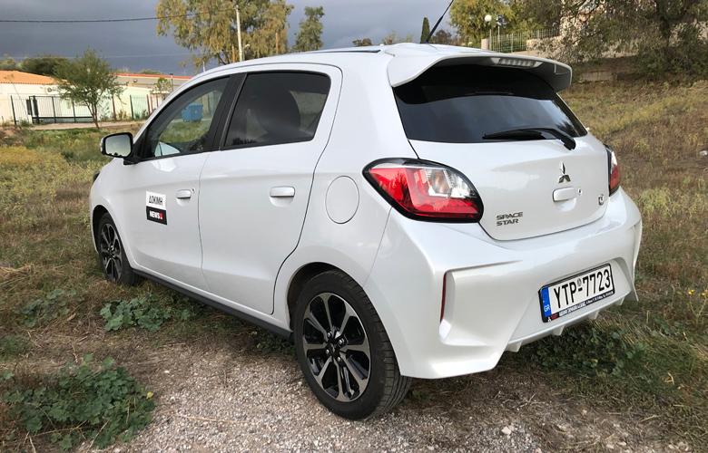 Το Space Star λοιπόν, είναι το αυτοκίνητο της δοκιμής μας, που με μήκος 3.845 χλστ (αύξηση κατά 50 χλστ σε σχέση με το μοντέλο του 2016) και κινητήρα βενζίνης 1,2 λίτρων, έχει υποστεί σοβαρές αισθητικές αλλαγές με ολική επανασχεδίαση του εμπρός τμήματος, αλλά και επεμβάσεις στον εντυπωσιακό πίσω προφυλακτήρα και στα πίσω φώτα. Οι σχεδιαστικές επεμβάσεις βελτίωσαν και τον αεροδυναμικό συντελεστή (Cd 0,27), με αποτέλεσμα τις καλύτερες επιδόσεις και τον μειωμένο αεροδυναμικό θόρυβο. Εμπλουτισμένη είναι και η γκάμα χρωμάτων με την οποία διατίθεται το μακρόστενο και σχετικά ψηλό αμάξωμα, οι χώροι του οποίου χωρούν άνετα 4 άτομα (τα 5 είναι μόνο στην θεωρία), μαζί με έως 235 λίτρα αποσκευών (φθάνει τα 912 με δίπλωμα των πίσω καθισμάτων). Πάντως οι πίσω επιβάτες έχουν επαρκέστατο ύψος για τα κεφάλια τους, ενώ ένας 5ος θα μπορούσε να γίνει ανεκτός μόνο σε μικρές μετακινήσεις.