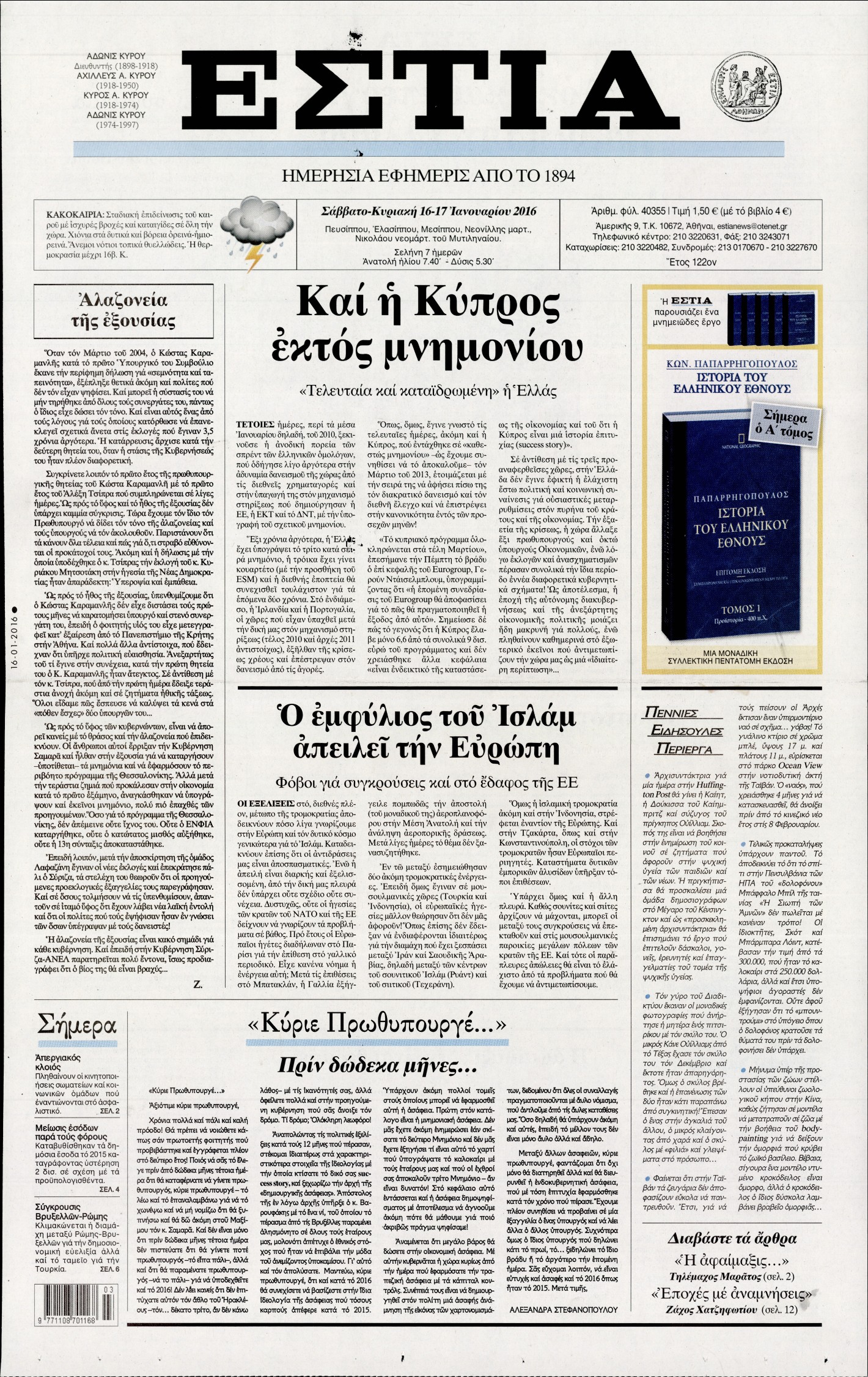 Σάββατο 16 Ιανουαρίου 2016