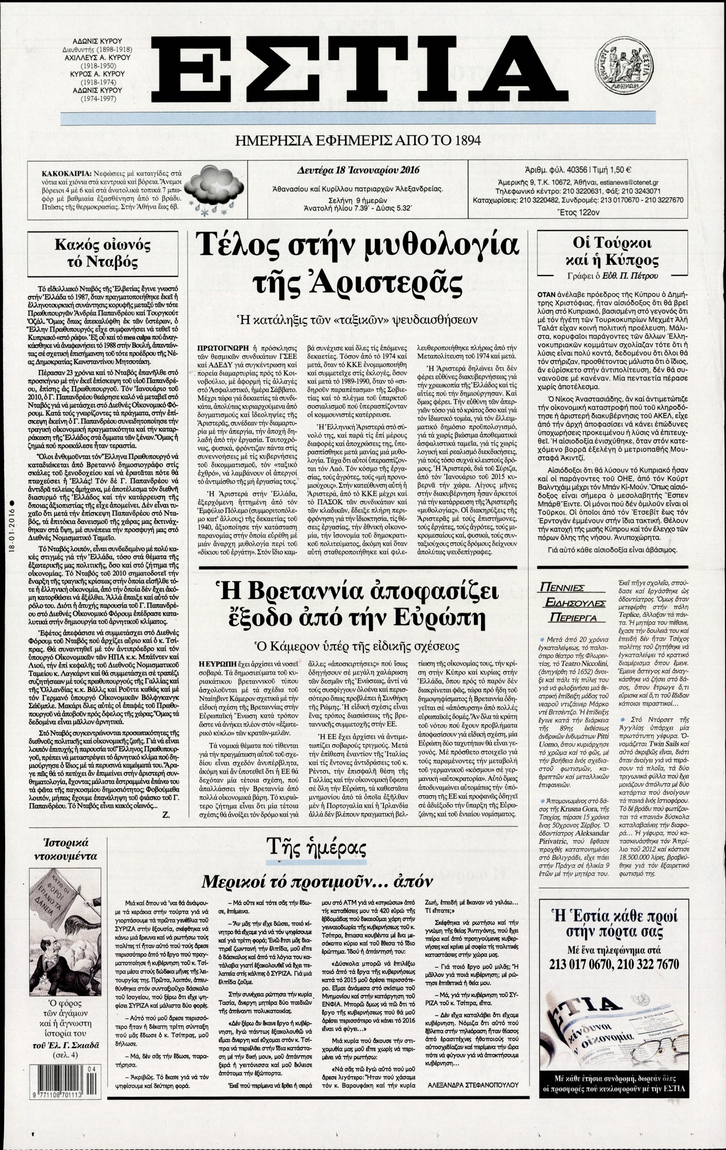 Δευτέρα 18 Ιανουαρίου 2016