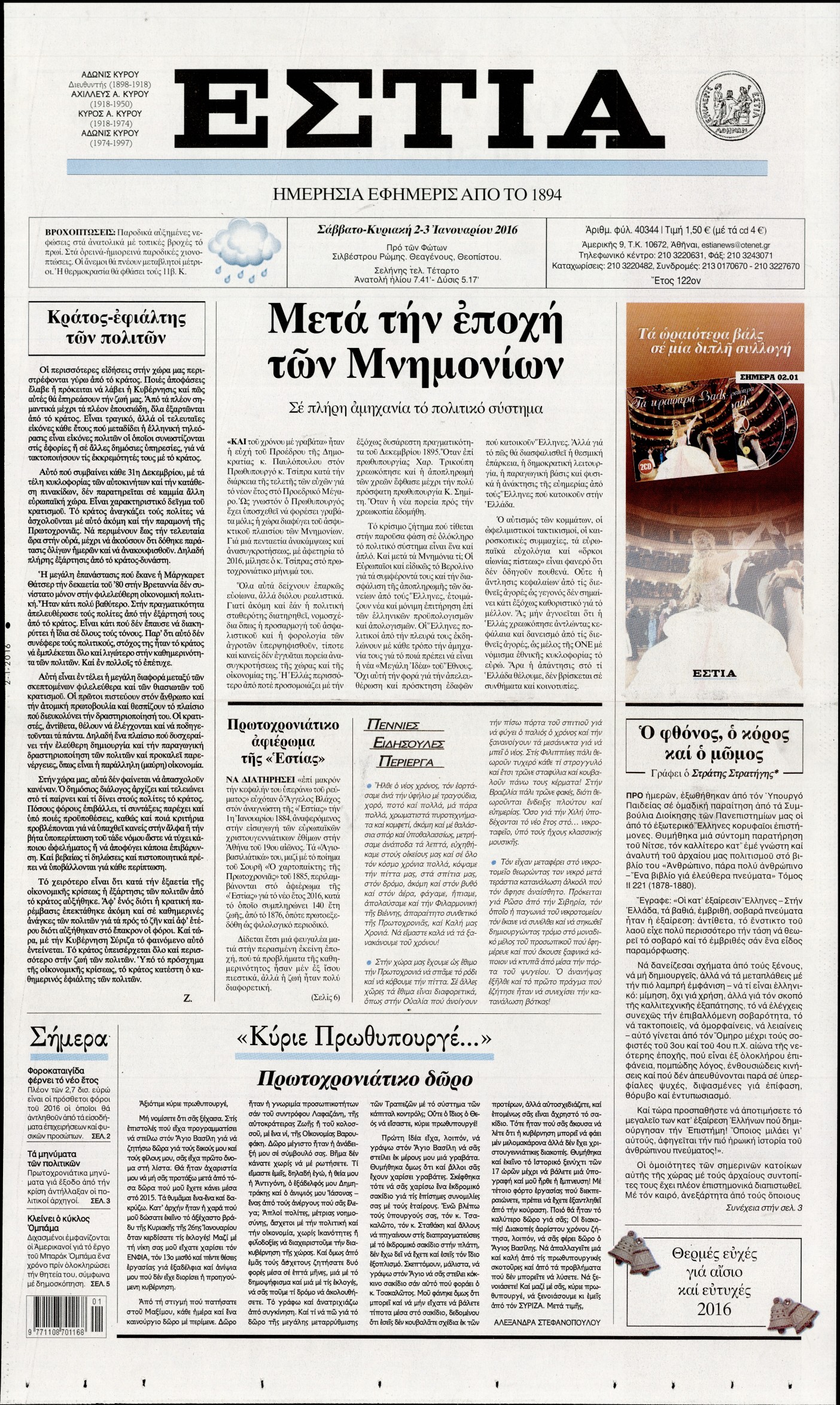 Σάββατο 2 Ιανουαρίου 2016