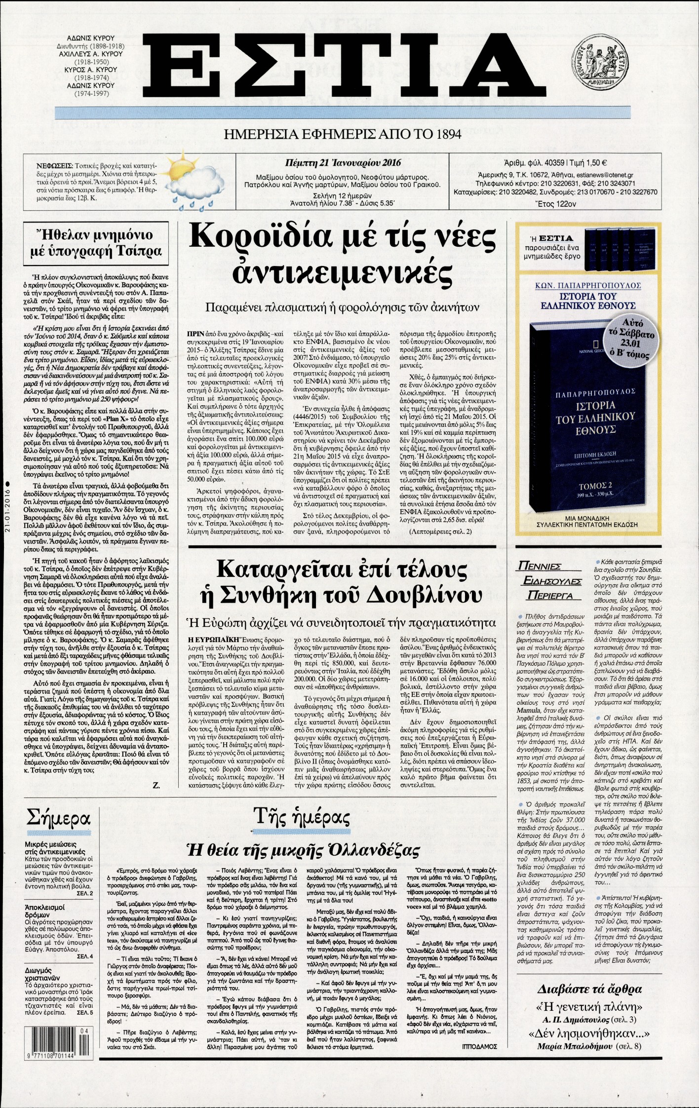 Πέμπτη 21 Ιανουαρίου 2016