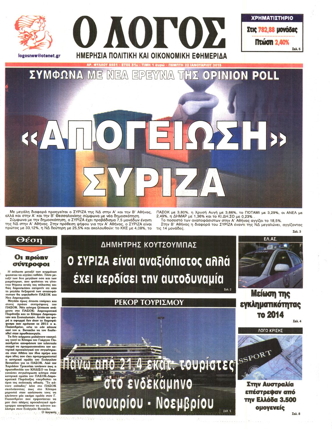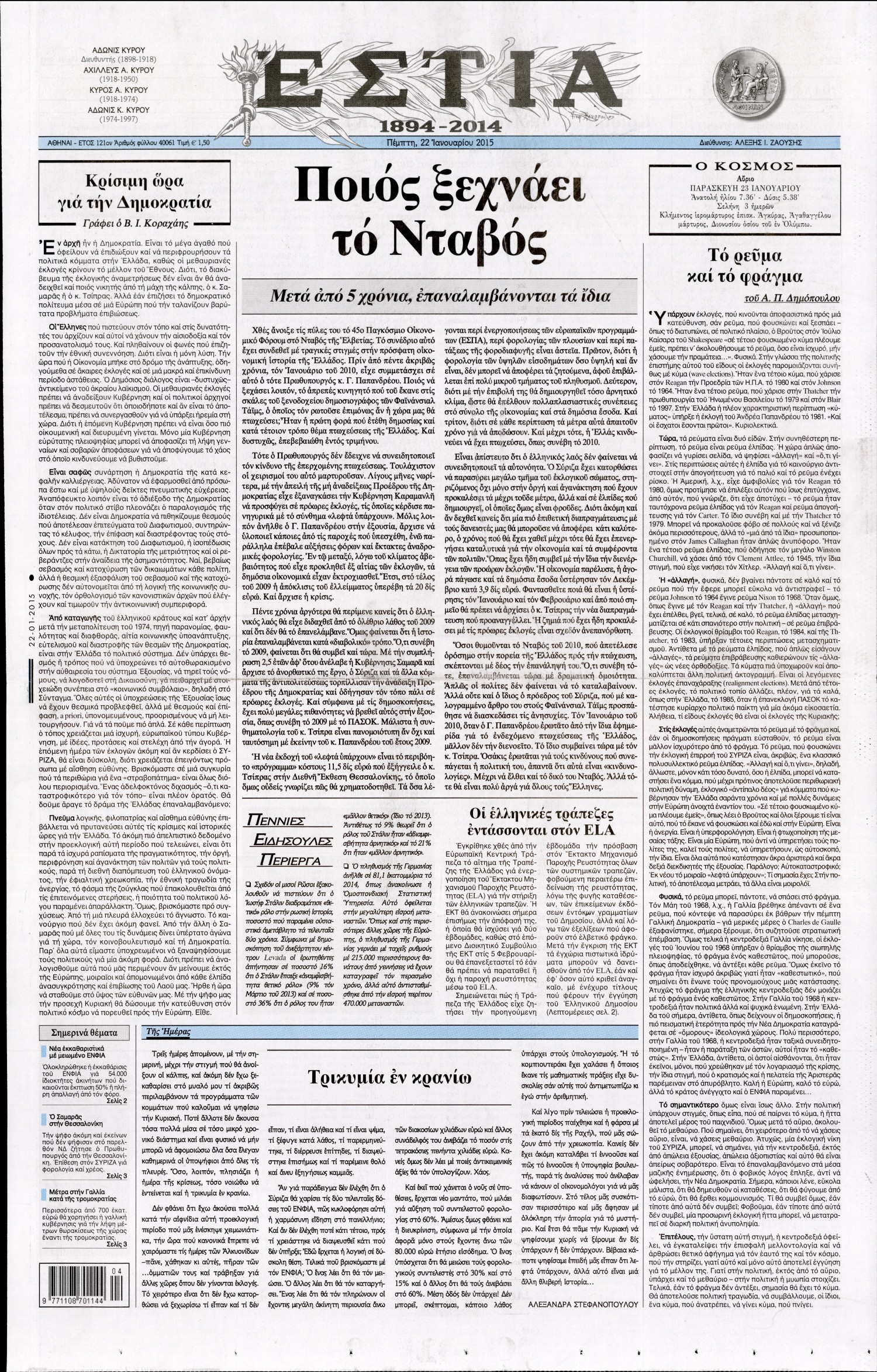 Πέμπτη 22 Ιανουαρίου 2015