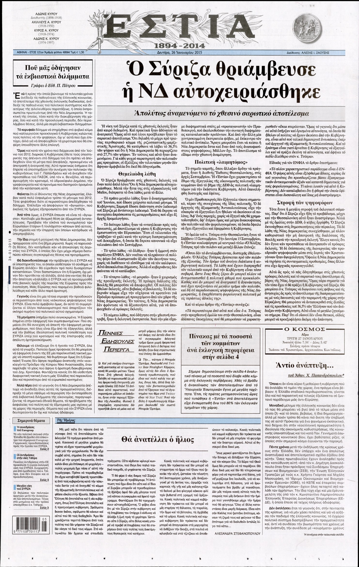 Δευτέρα 26 Ιανουαρίου 2015