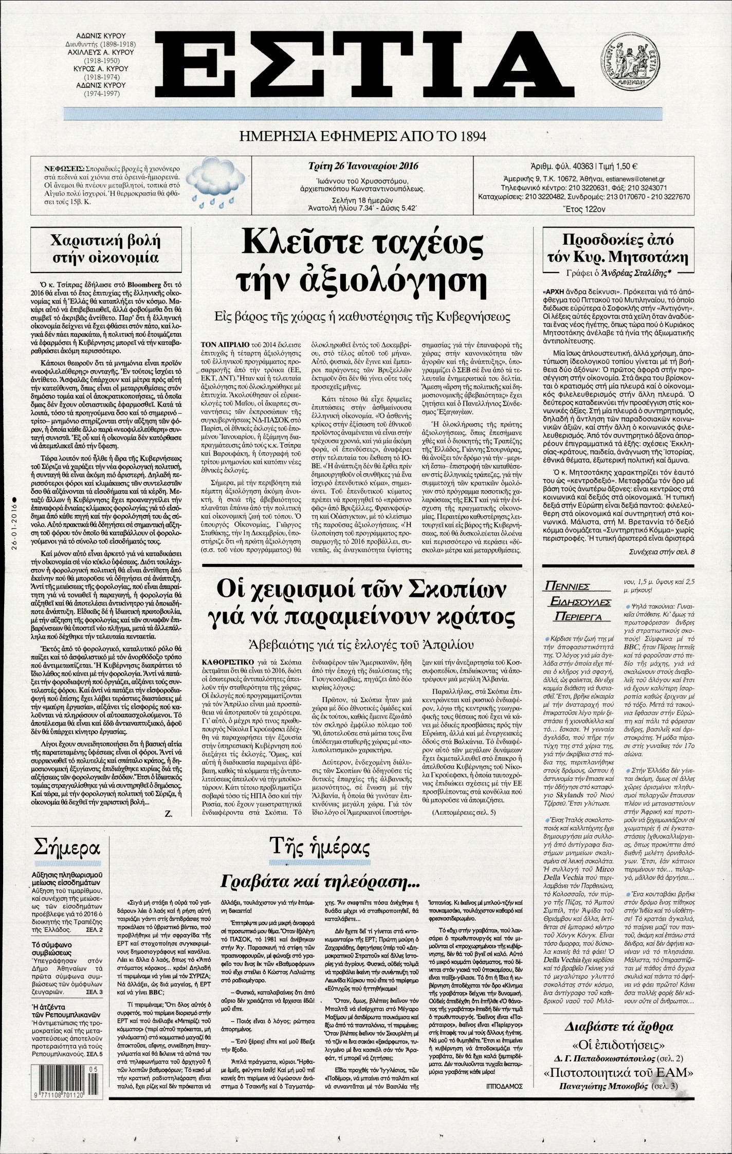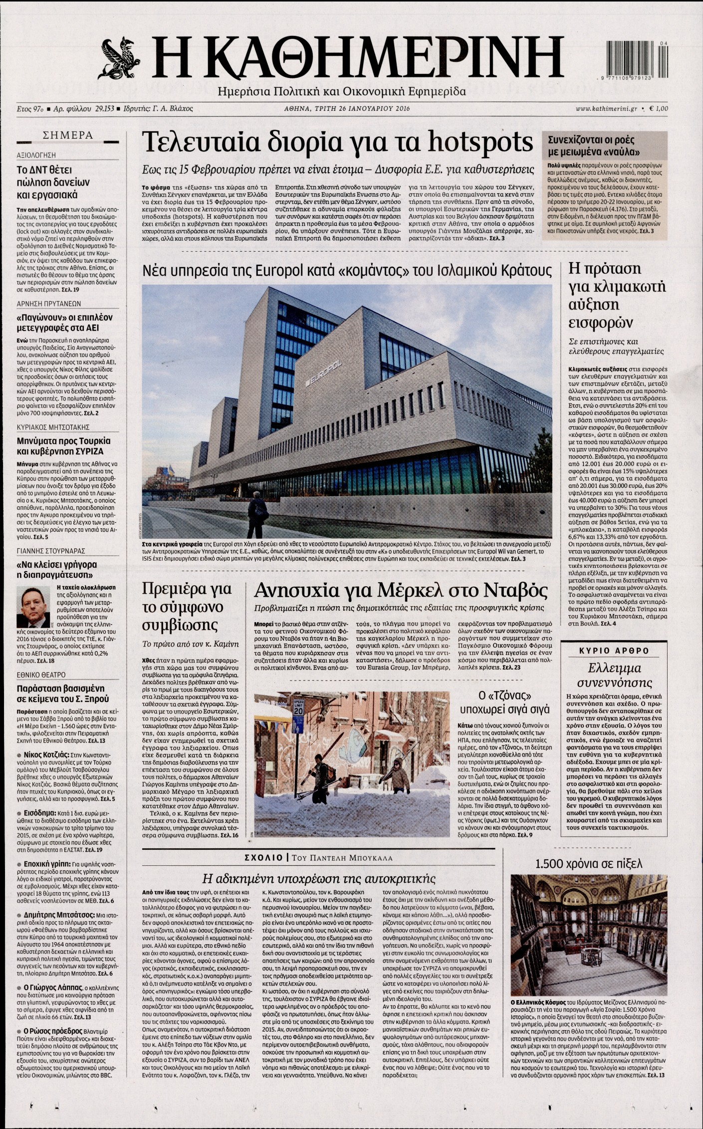 Τρίτη 26 Ιανουαρίου 2016