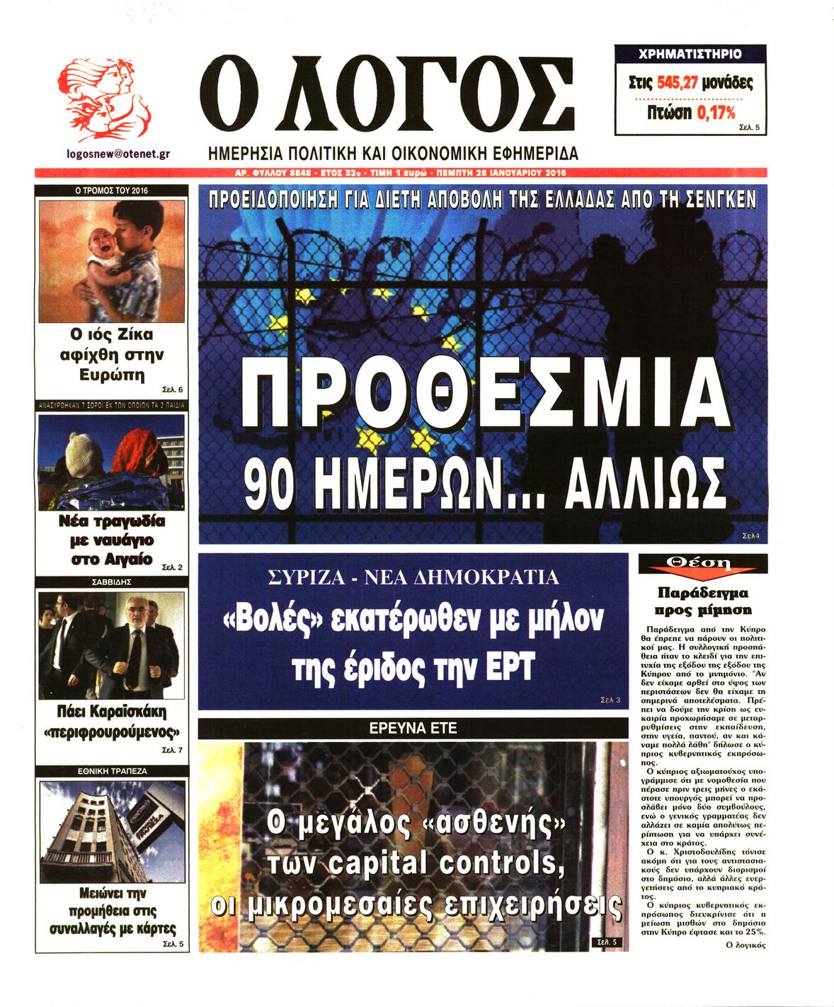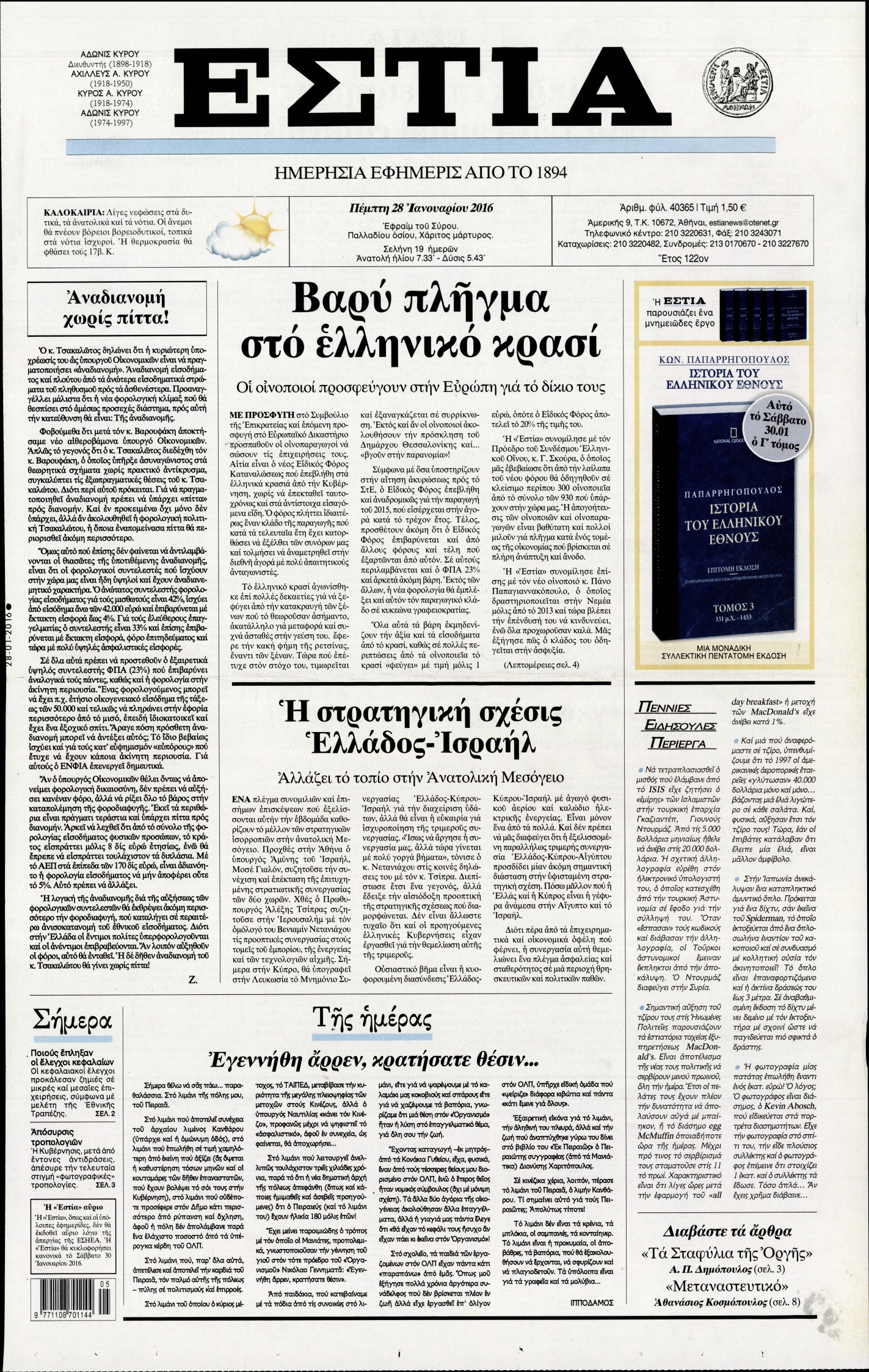 Πέμπτη 28 Ιανουαρίου 2016