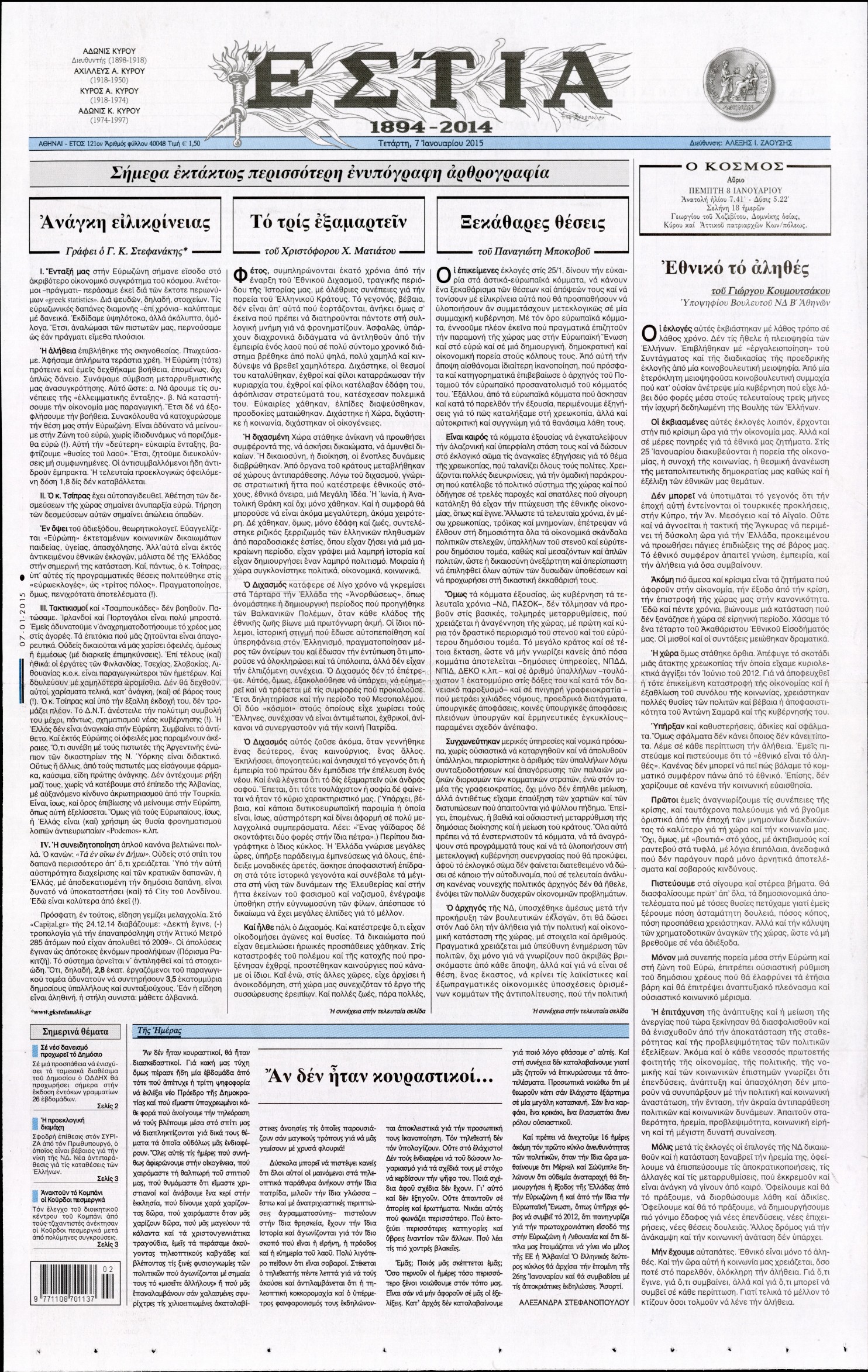 Τετάρτη 7 Ιανουαρίου 2015