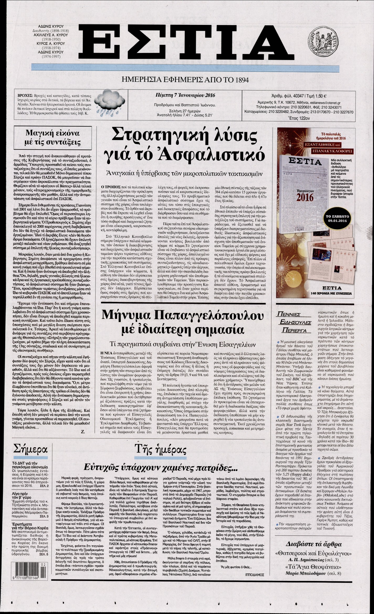 Πέμπτη 7 Ιανουαρίου 2016
