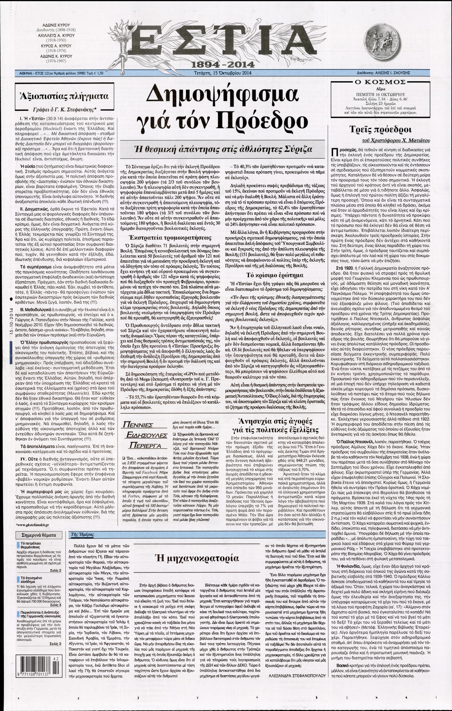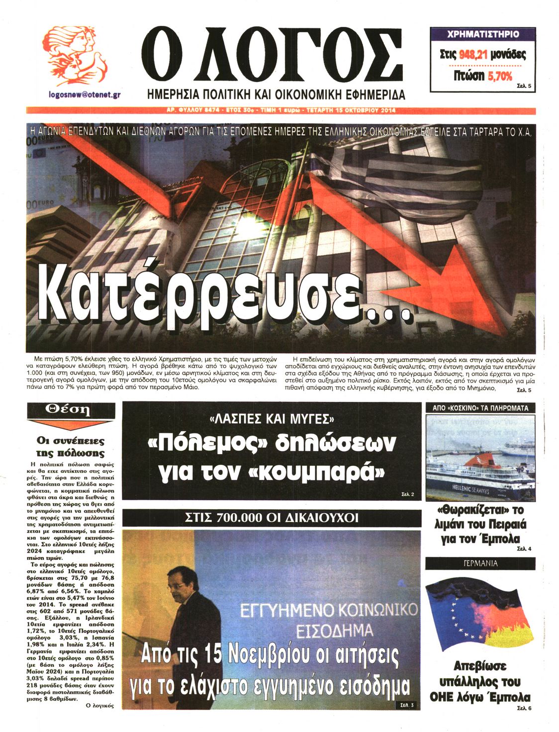 Τετάρτη 15 Οκτωβρίου 2014