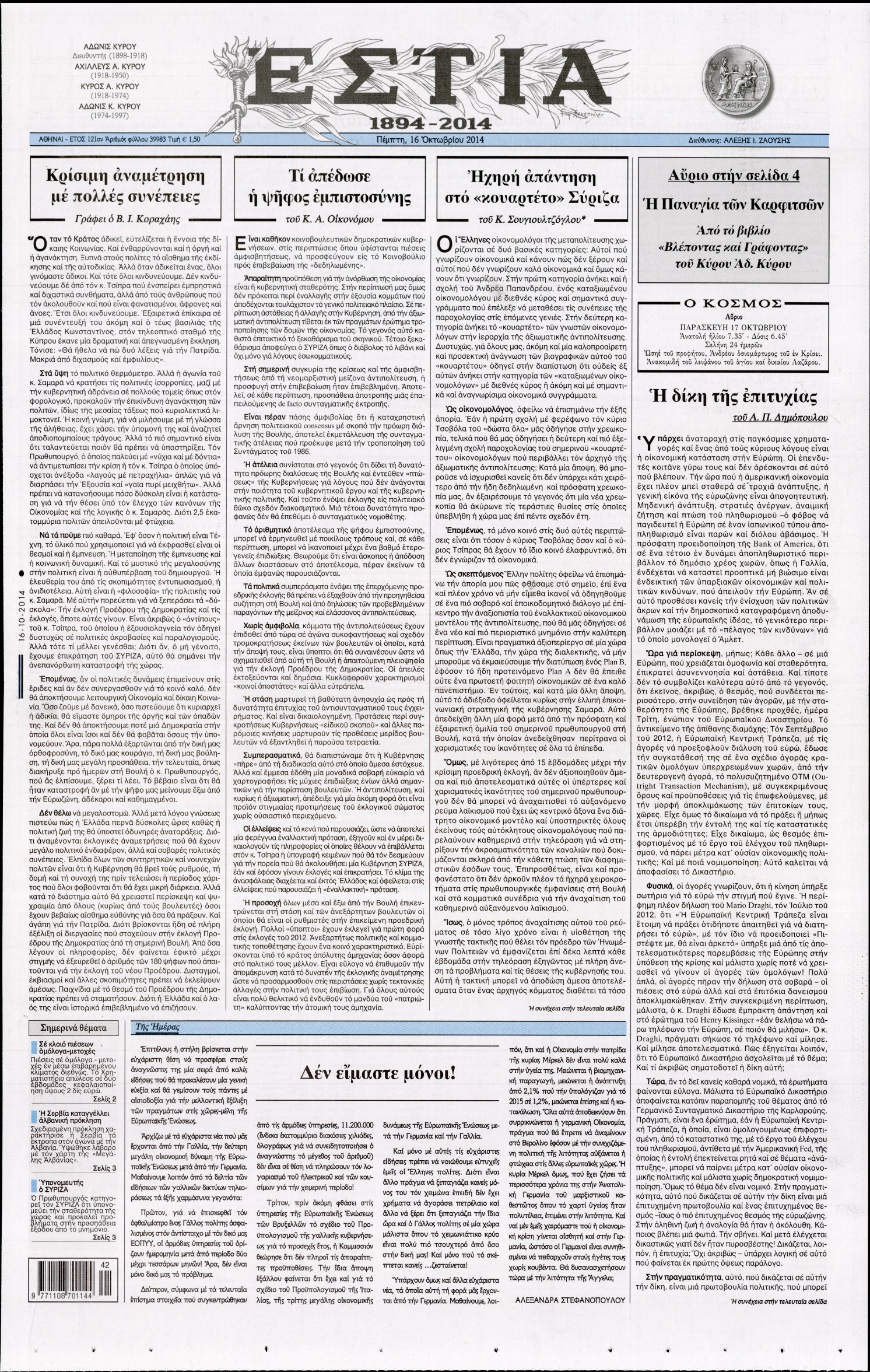 Πέμπτη 16 Οκτωβρίου 2014