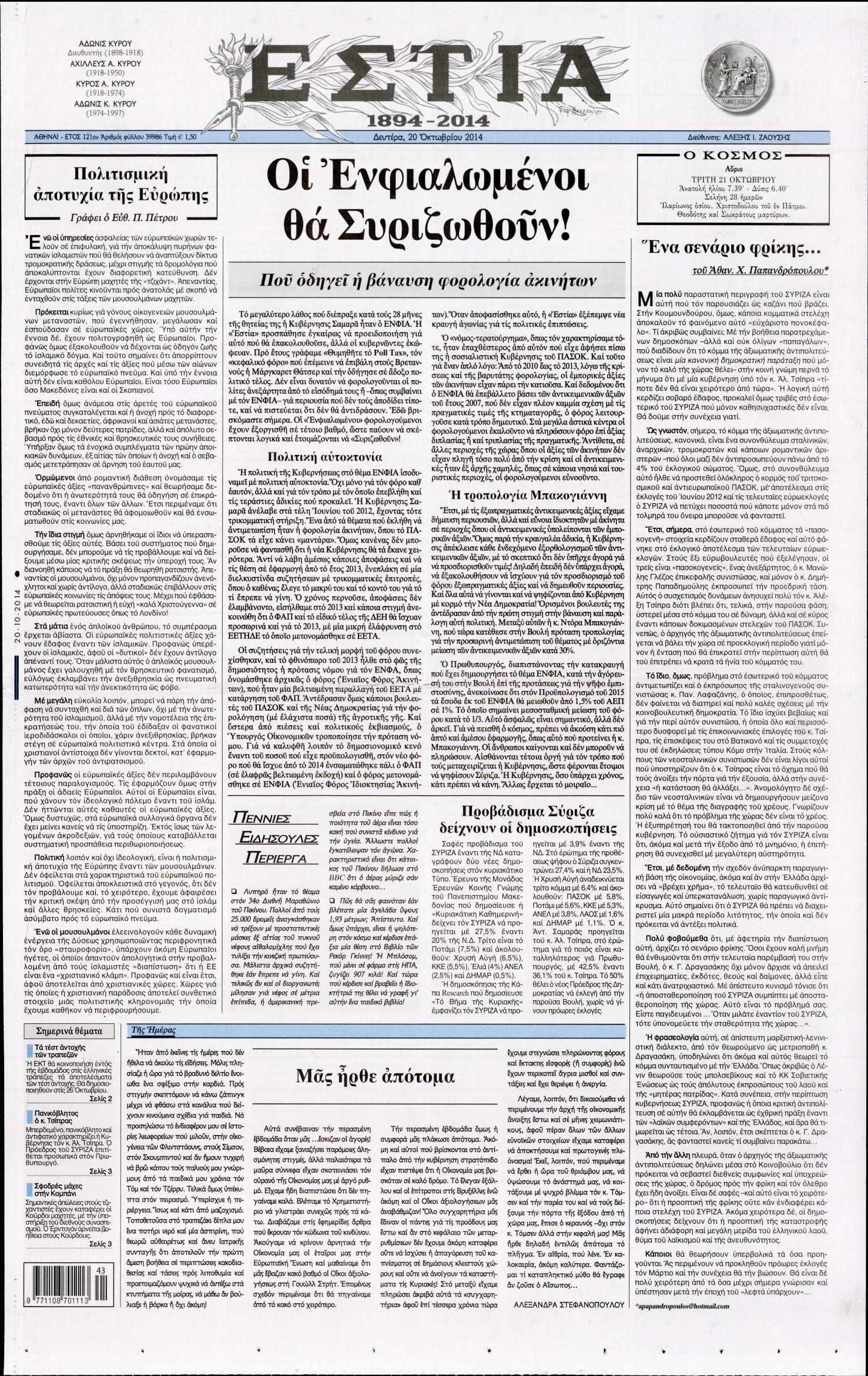Δευτέρα 20 Οκτωβρίου 2014