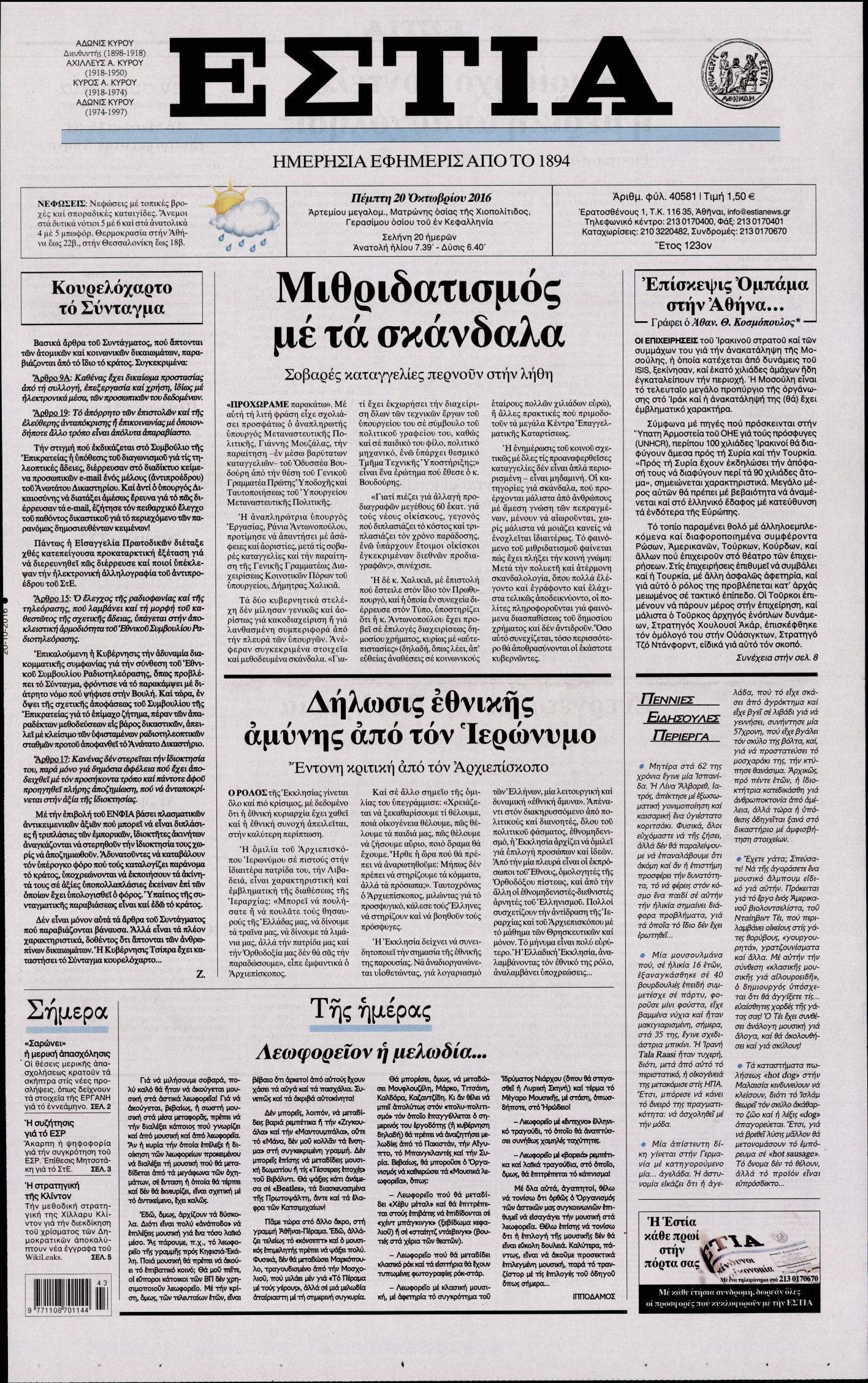 Πέμπτη 20 Οκτωβρίου 2016
