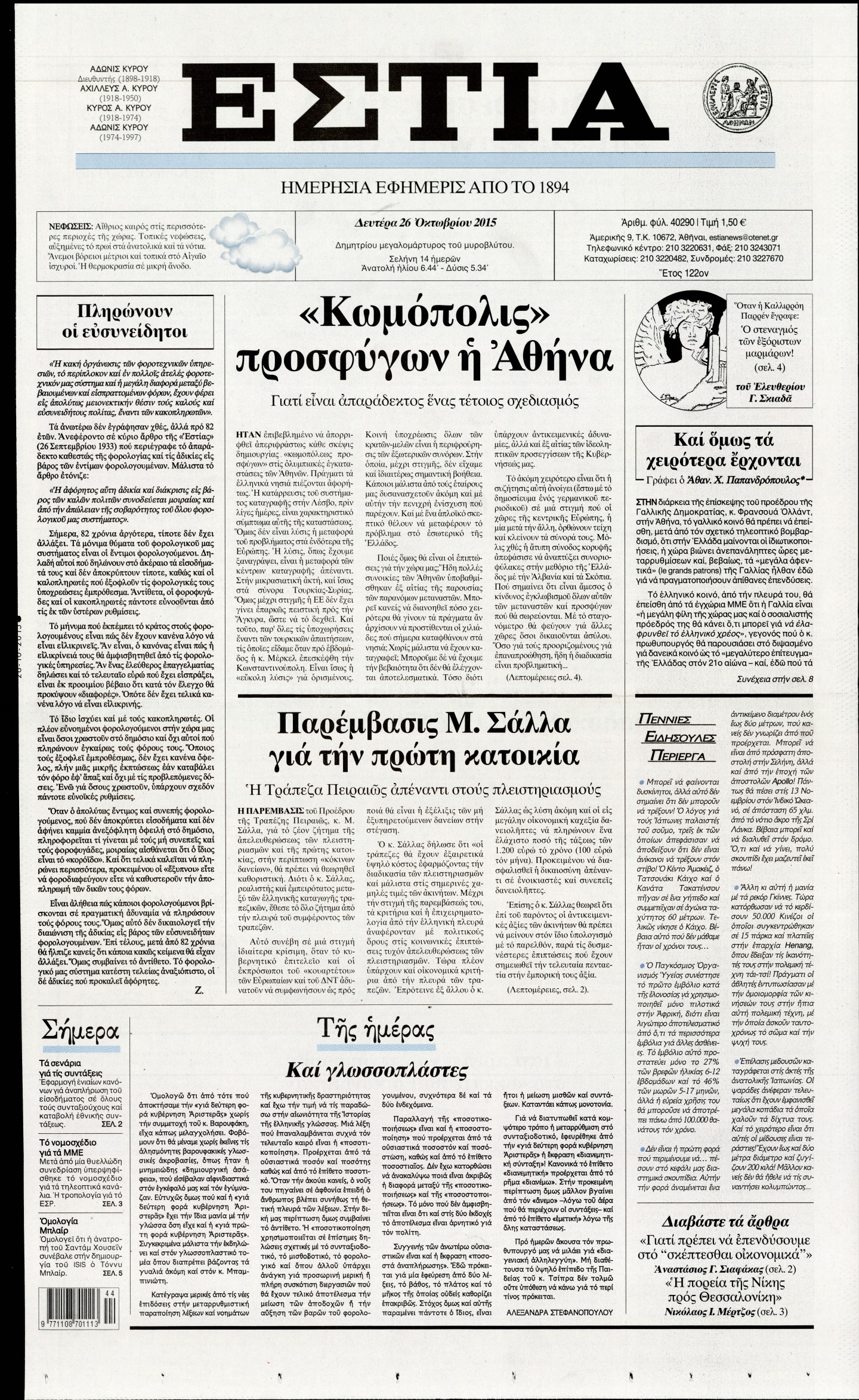 Δευτέρα 26 Οκτωβρίου 2015