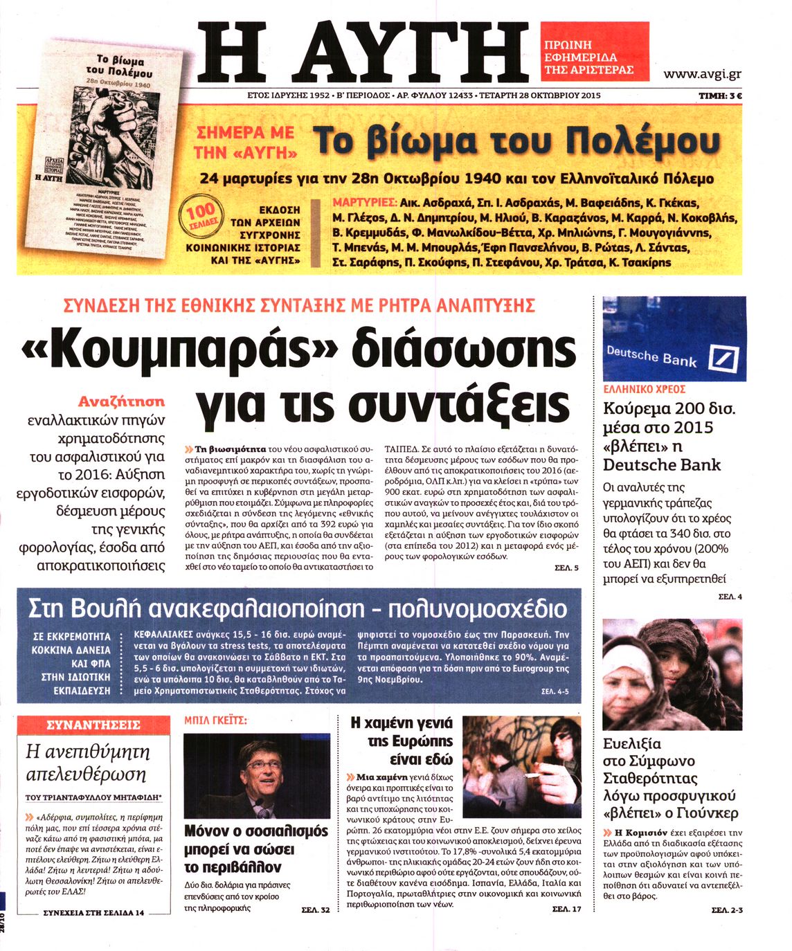 Τετάρτη 28 Οκτωβρίου 2015