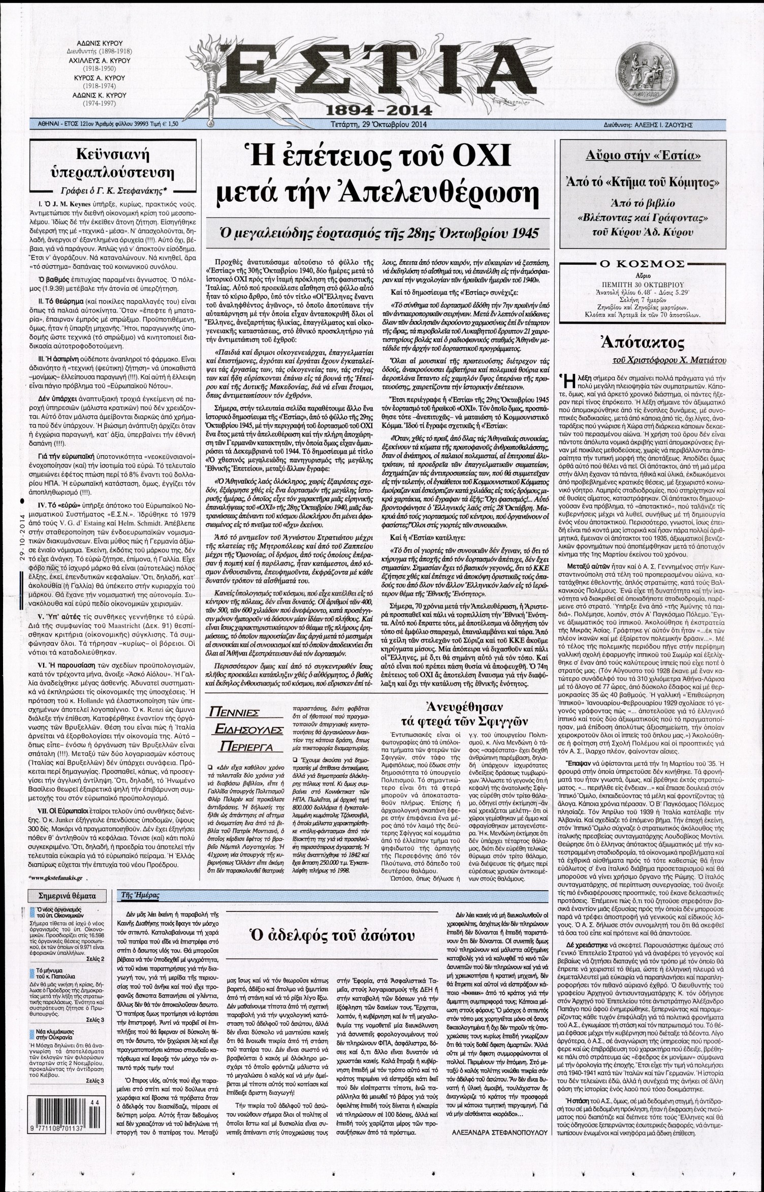 Τετάρτη 29 Οκτωβρίου 2014