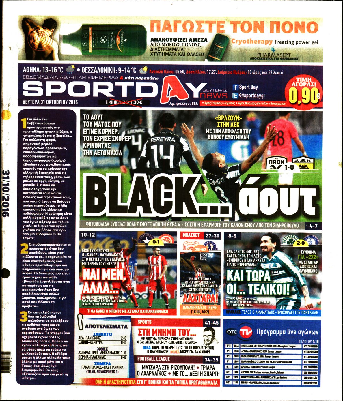 Δευτέρα 31 Οκτωβρίου 2016