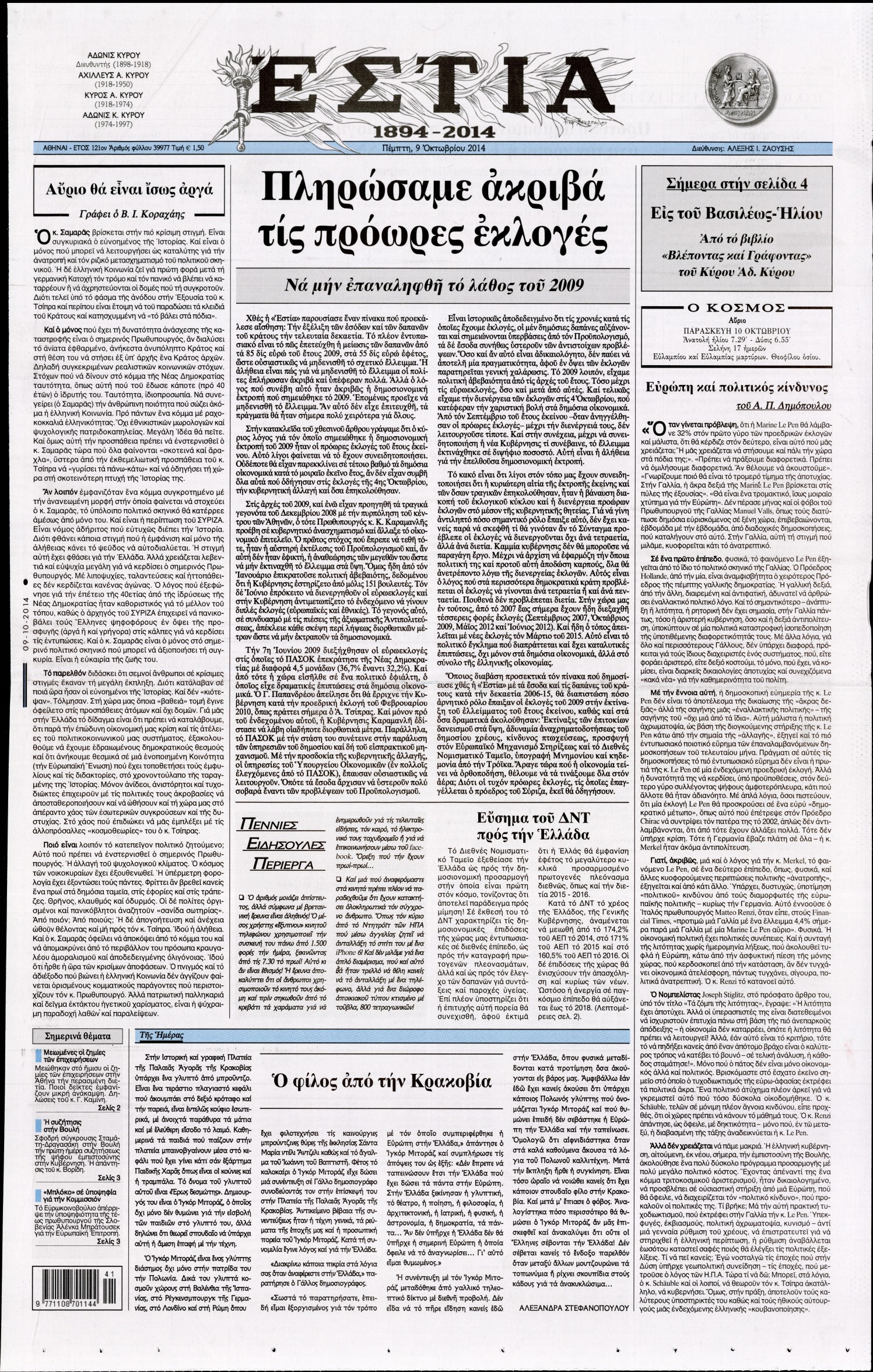 Πέμπτη 9 Οκτωβρίου 2014
