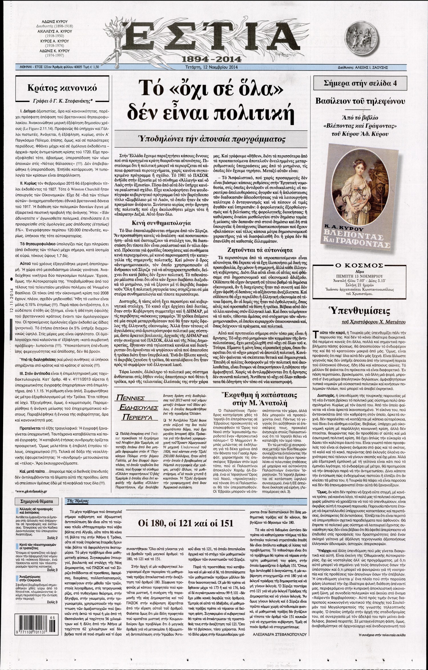 Τετάρτη 12 Νοεμβρίου 2014