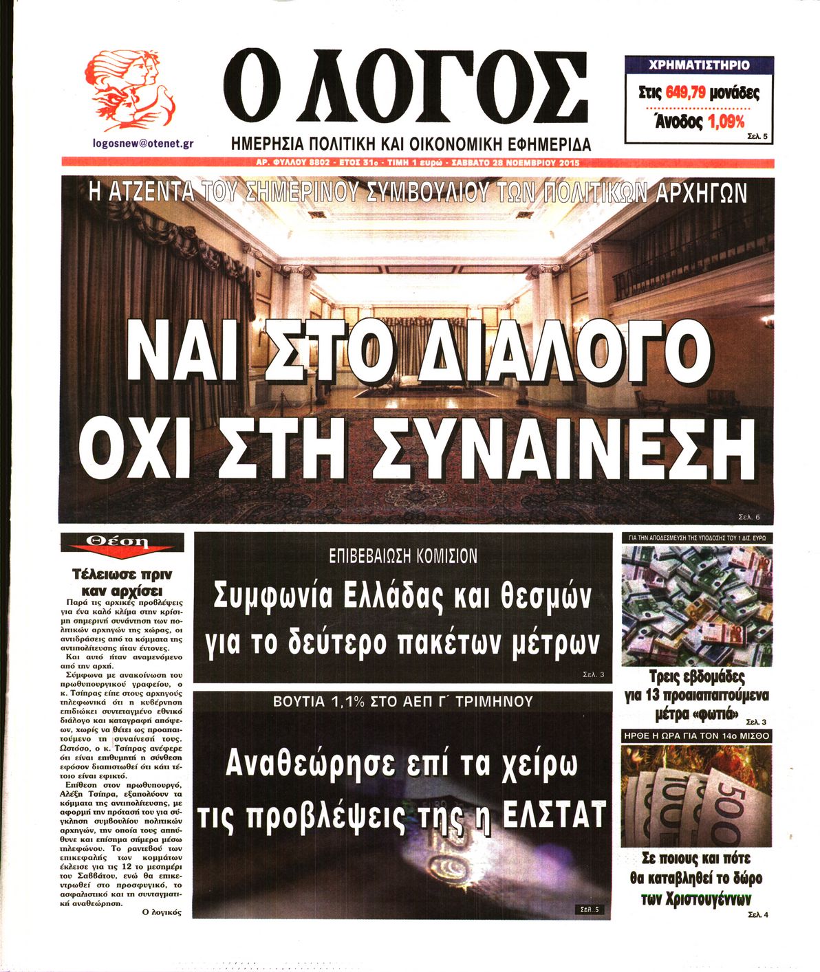 Σάββατο 28 Νοεμβρίου 2015