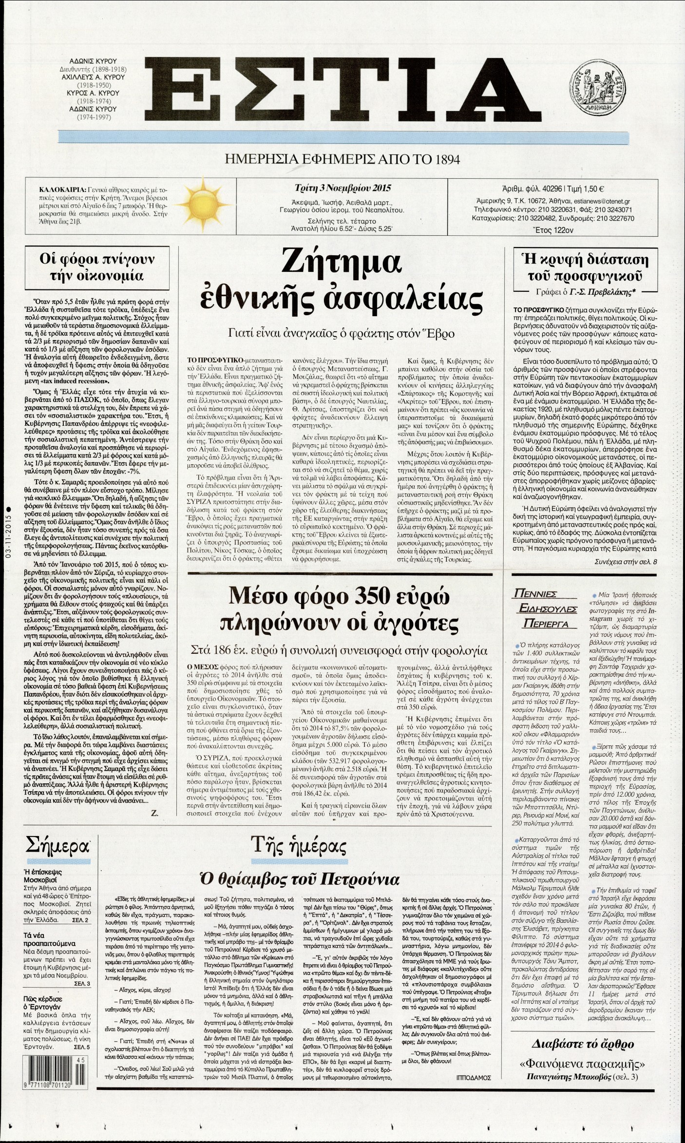 Τρίτη 3 Νοεμβρίου 2015