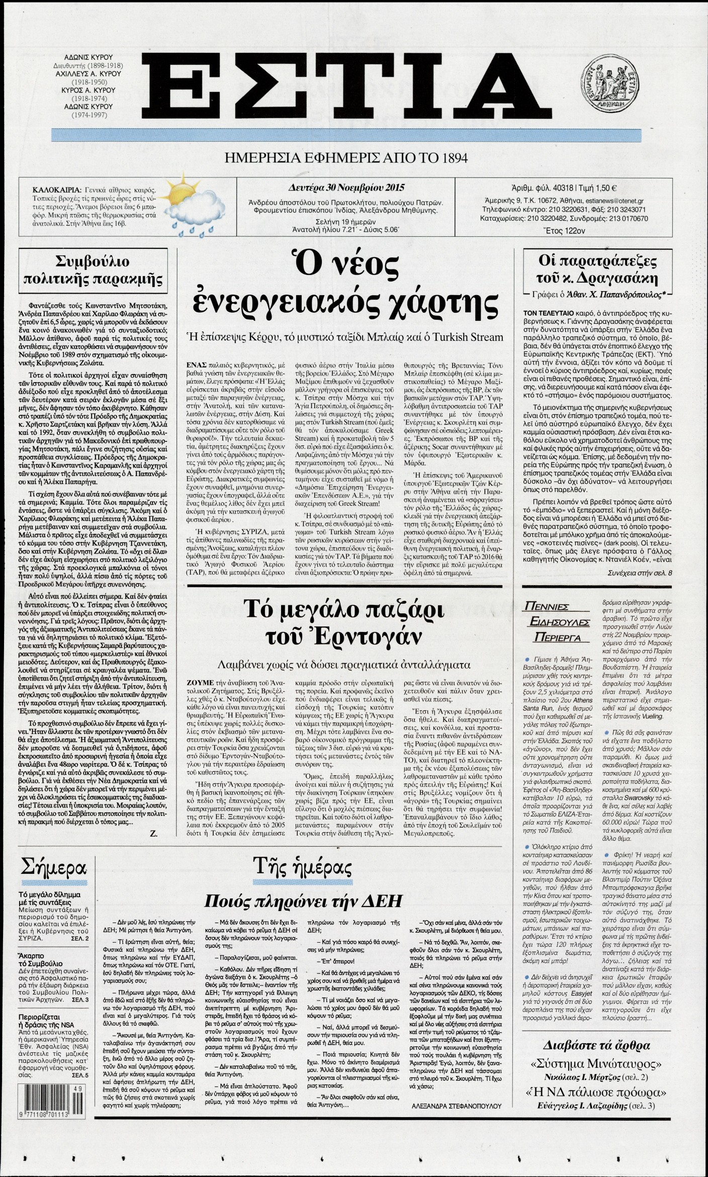 Δευτέρα 30 Νοεμβρίου 2015