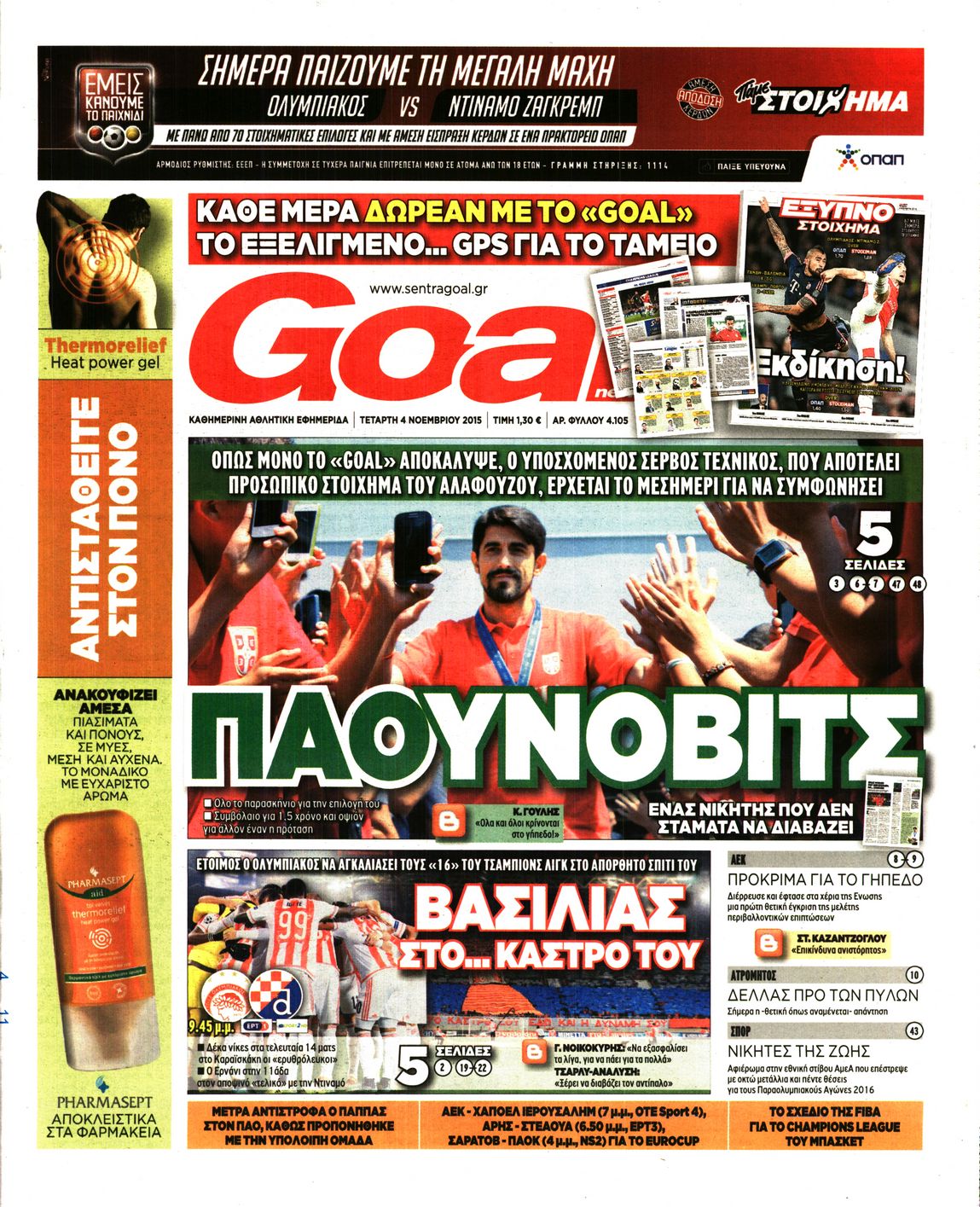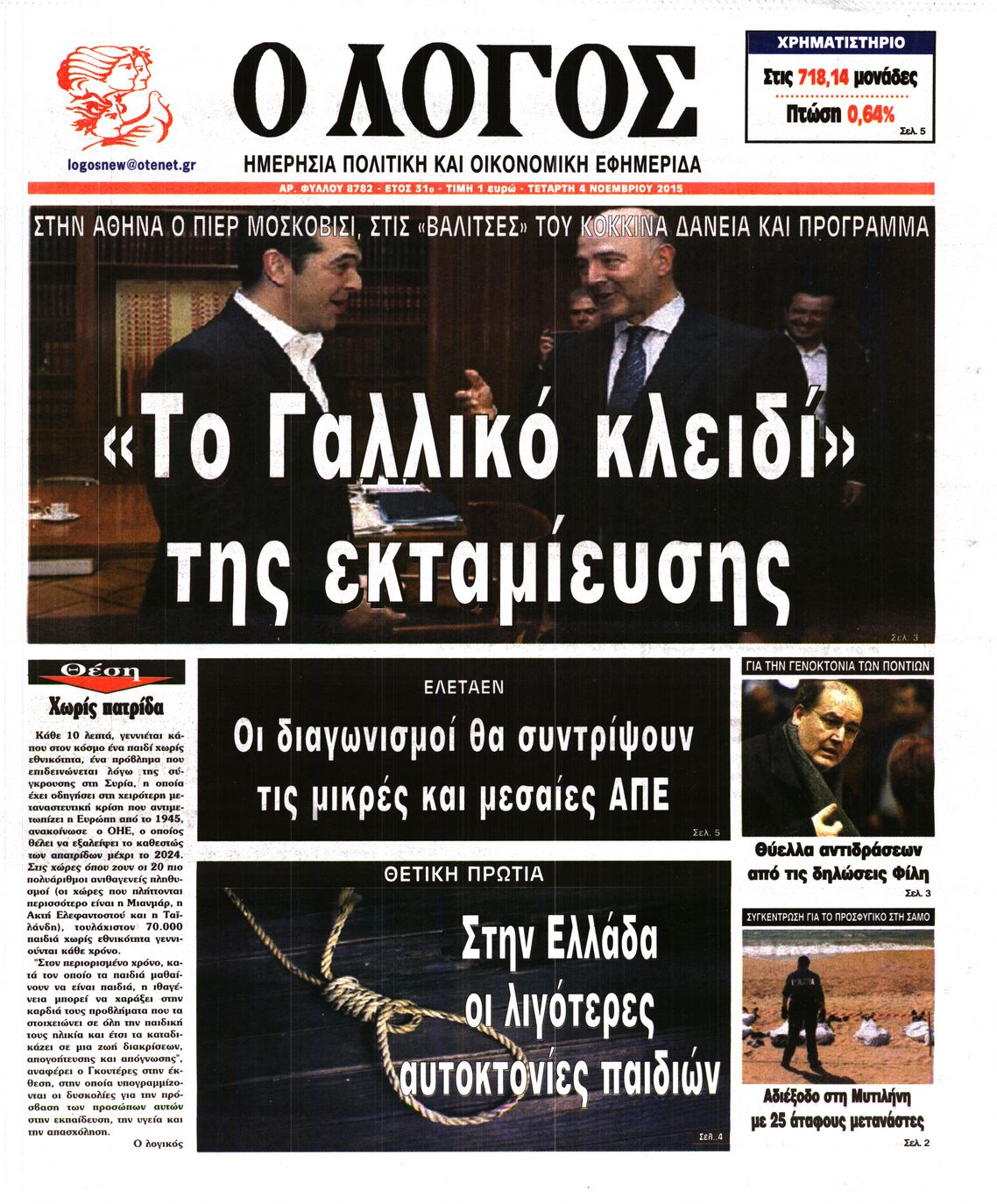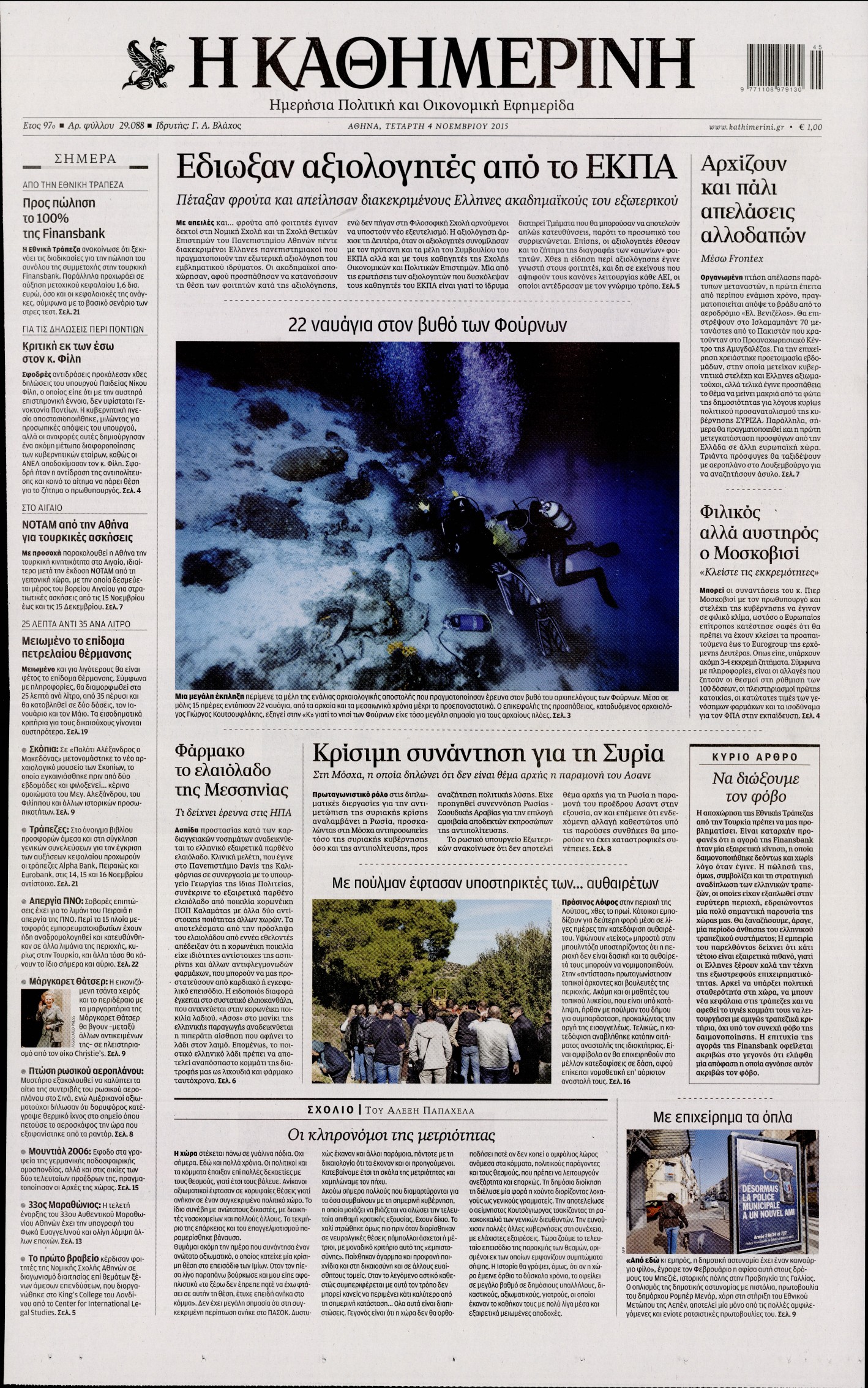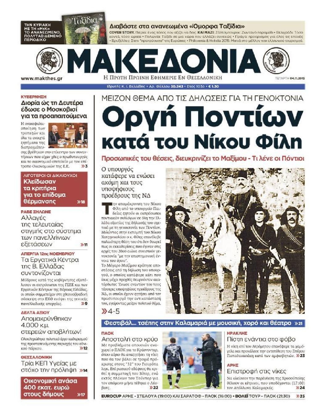 Τετάρτη 4 Νοεμβρίου 2015
