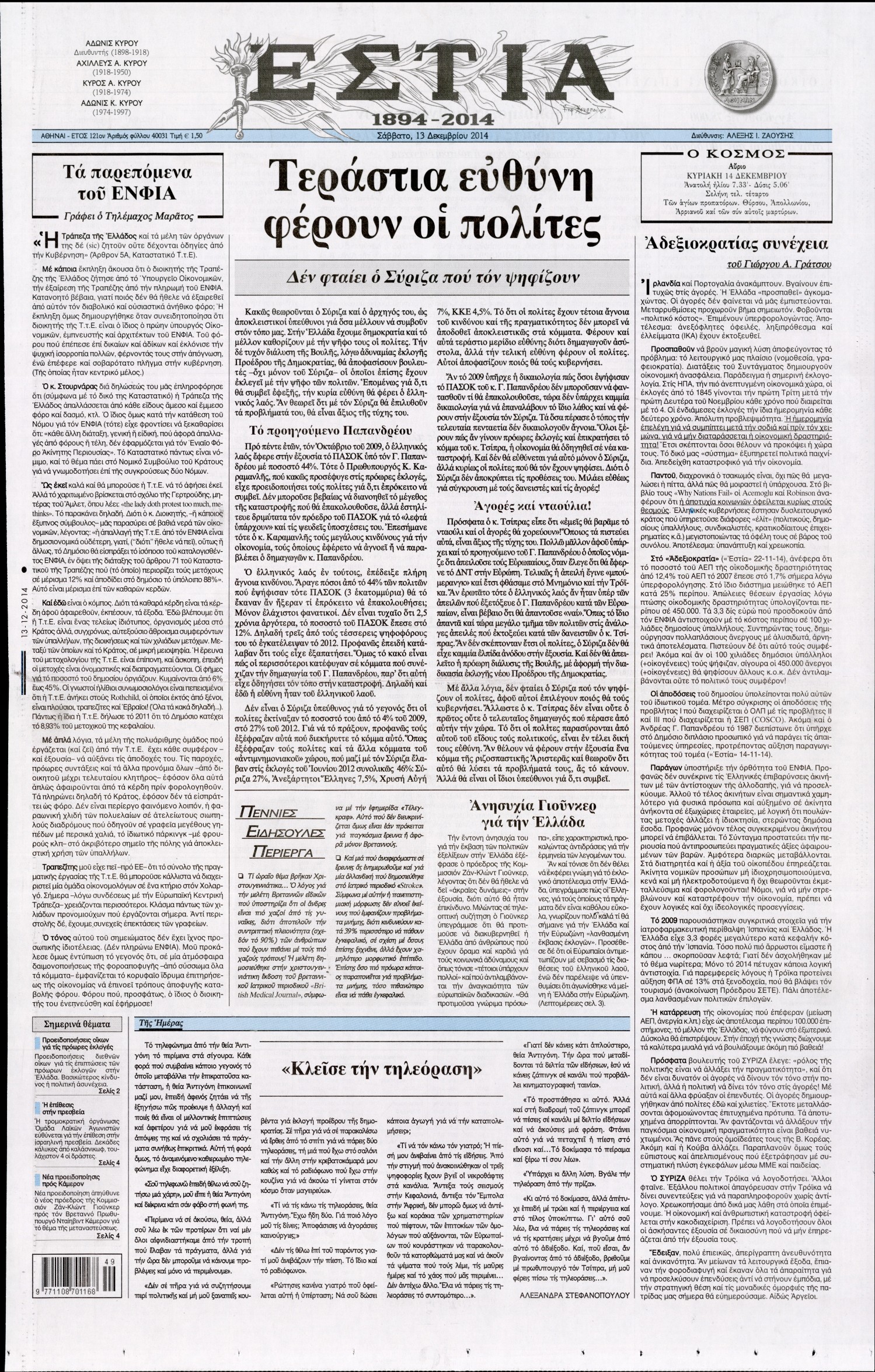 Σάββατο 13 Δεκεμβρίου 2014