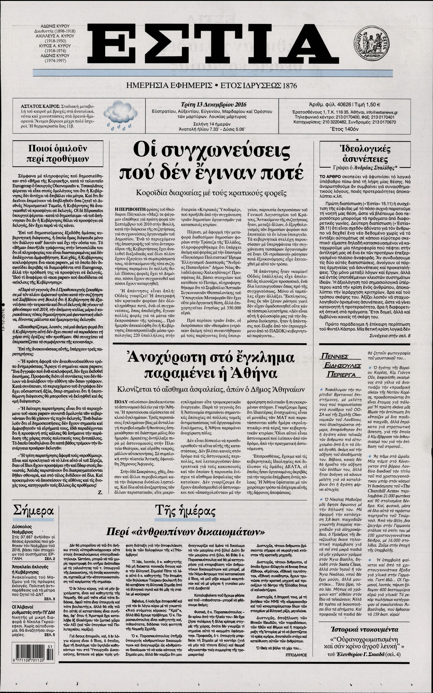 Τρίτη 13 Δεκεμβρίου 2016