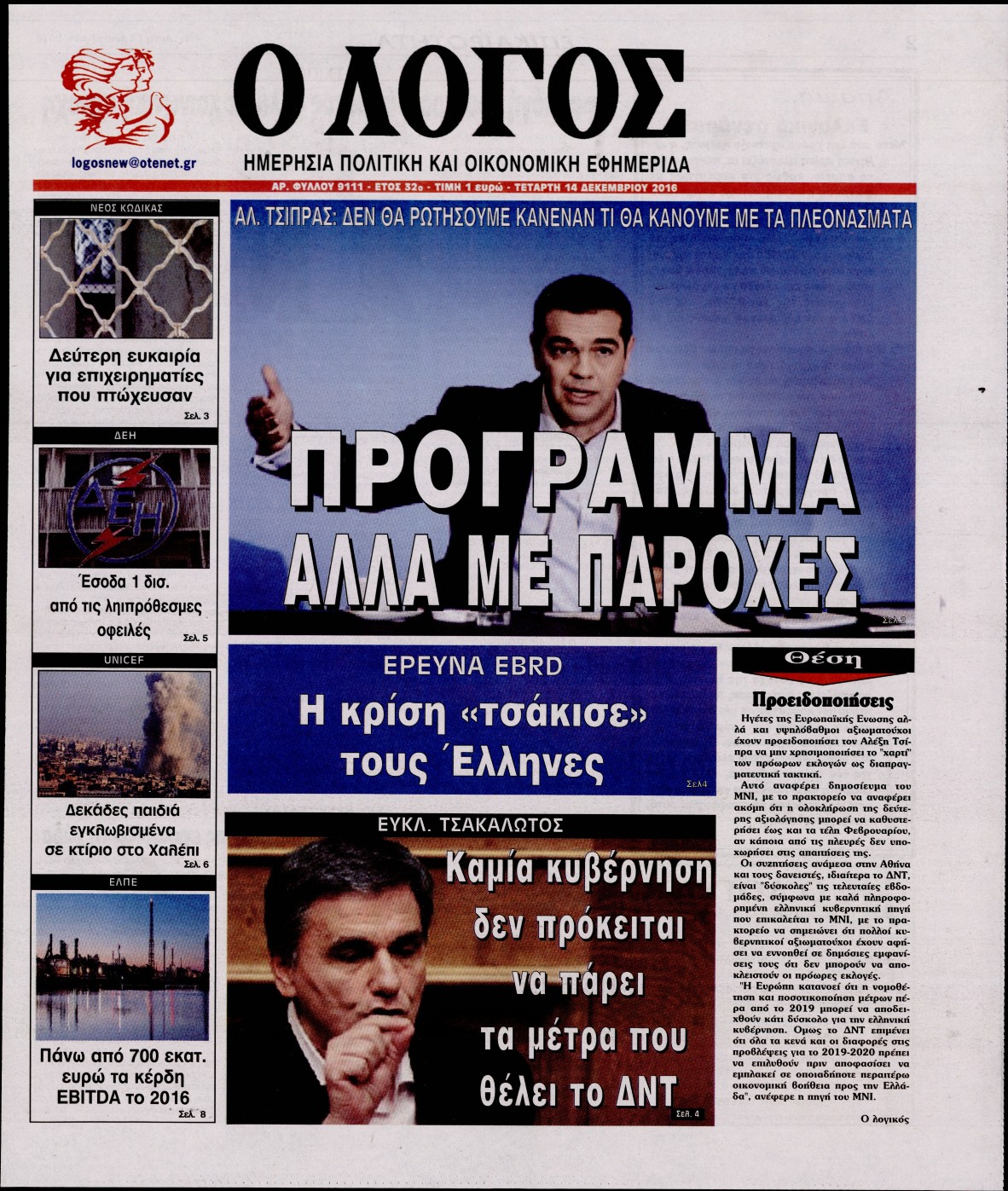 Τετάρτη 14 Δεκεμβρίου 2016