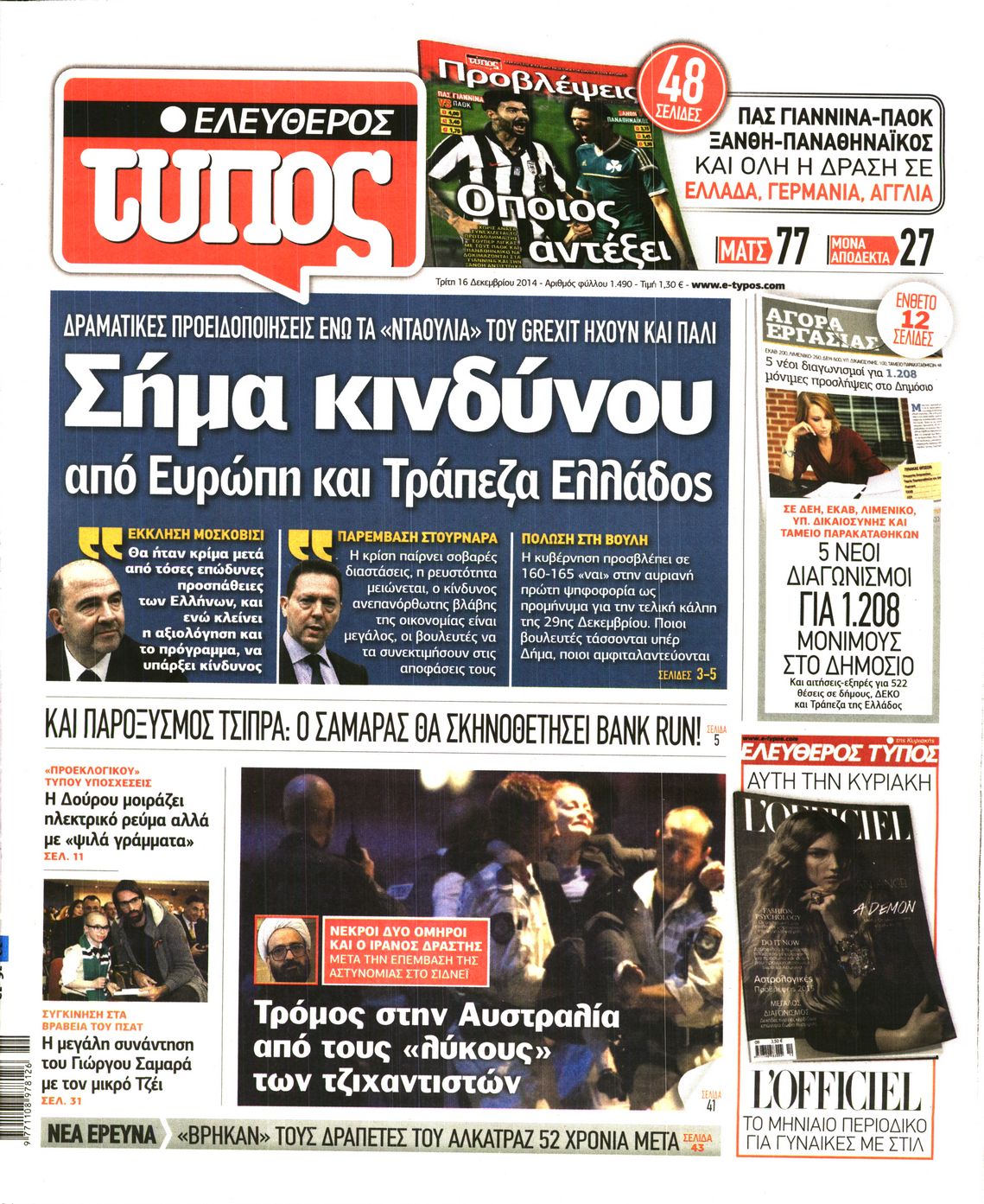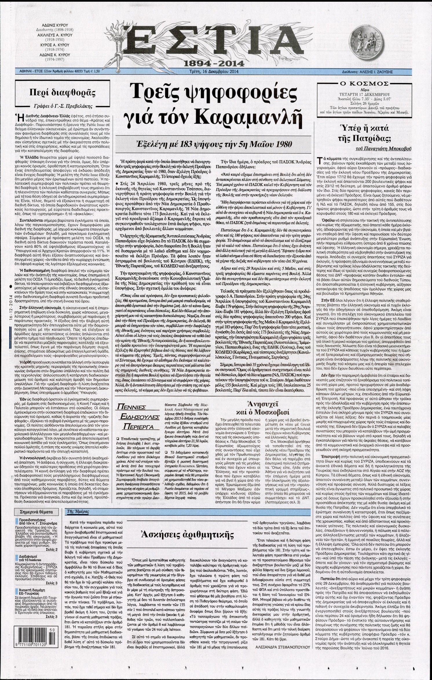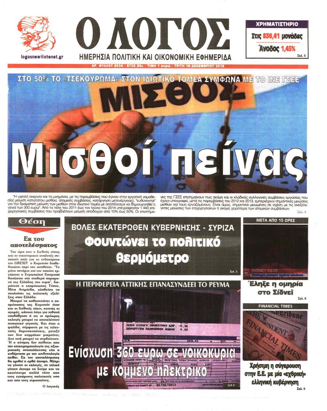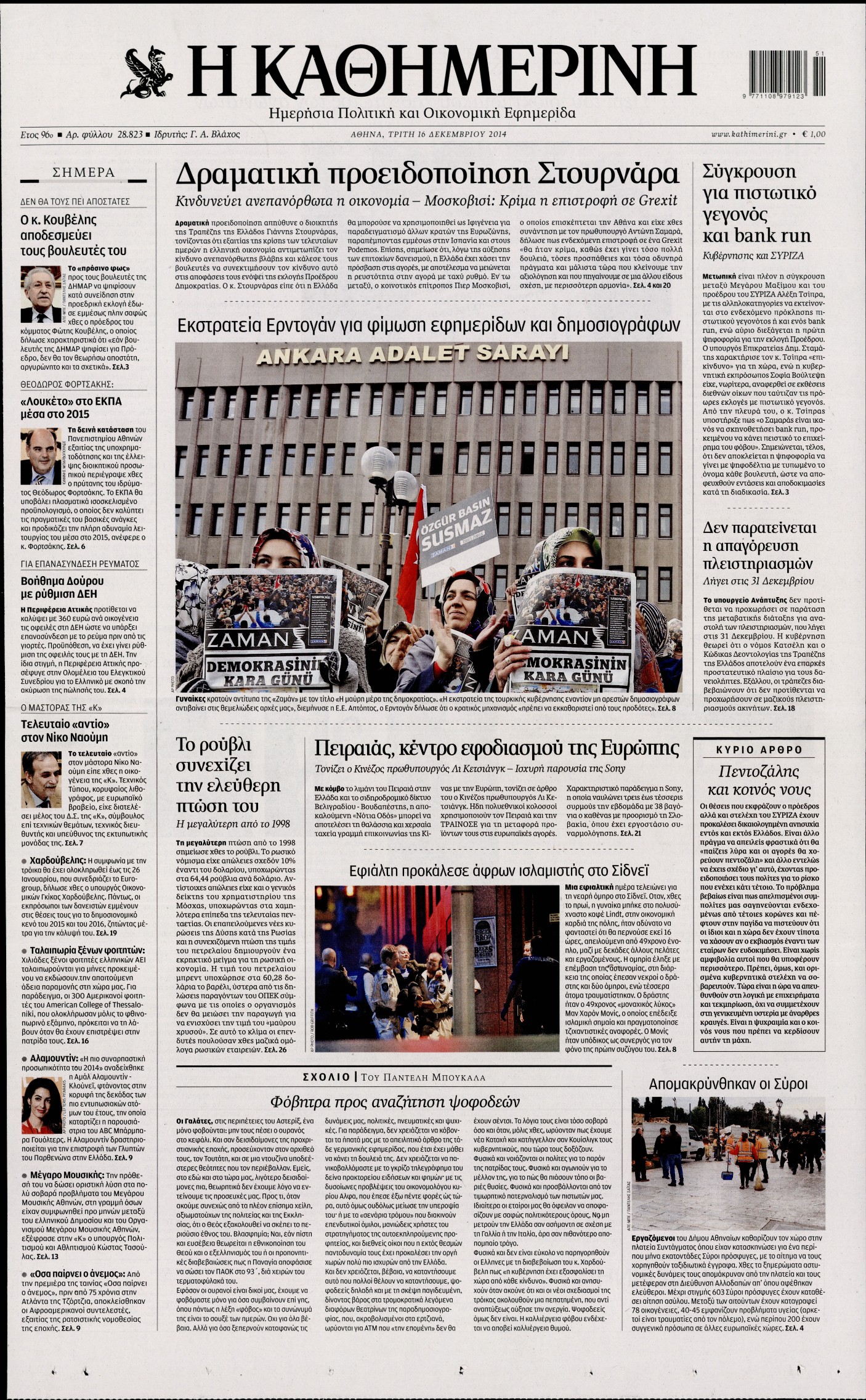 Τρίτη 16 Δεκεμβρίου 2014