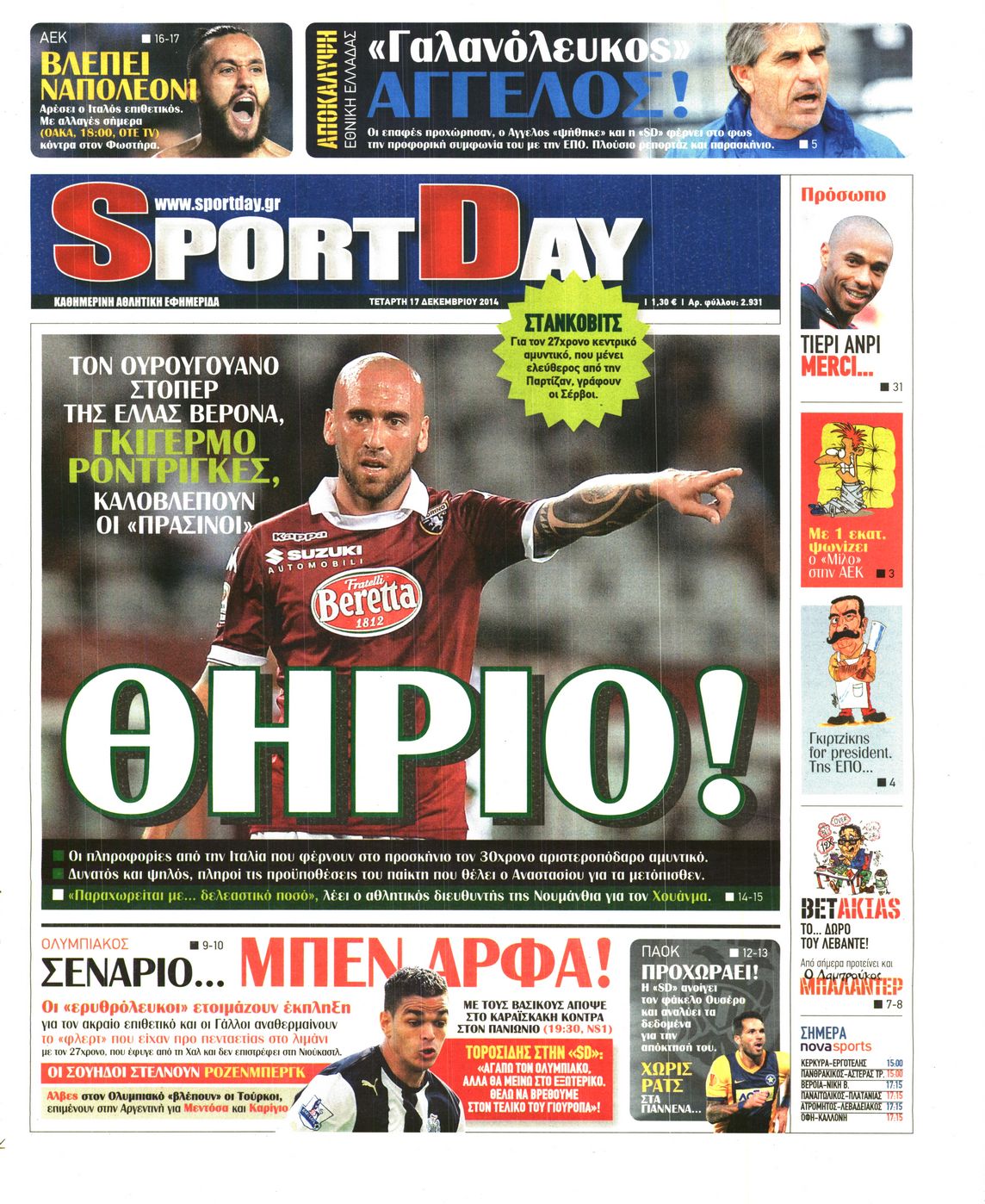 Τετάρτη 17 Δεκεμβρίου 2014