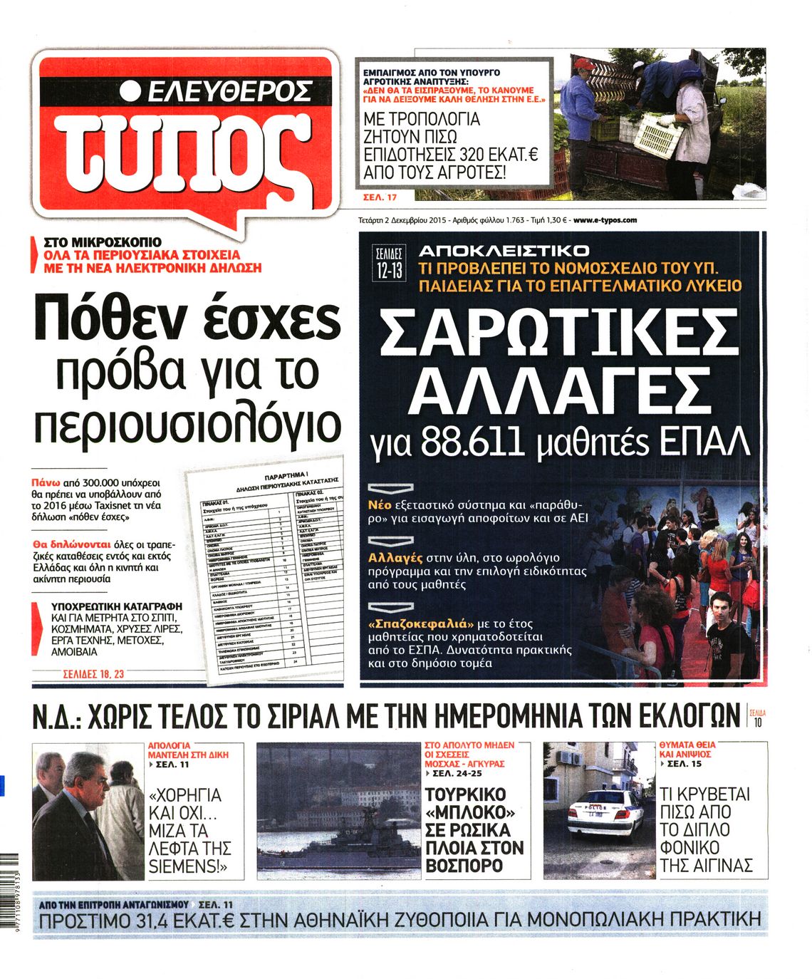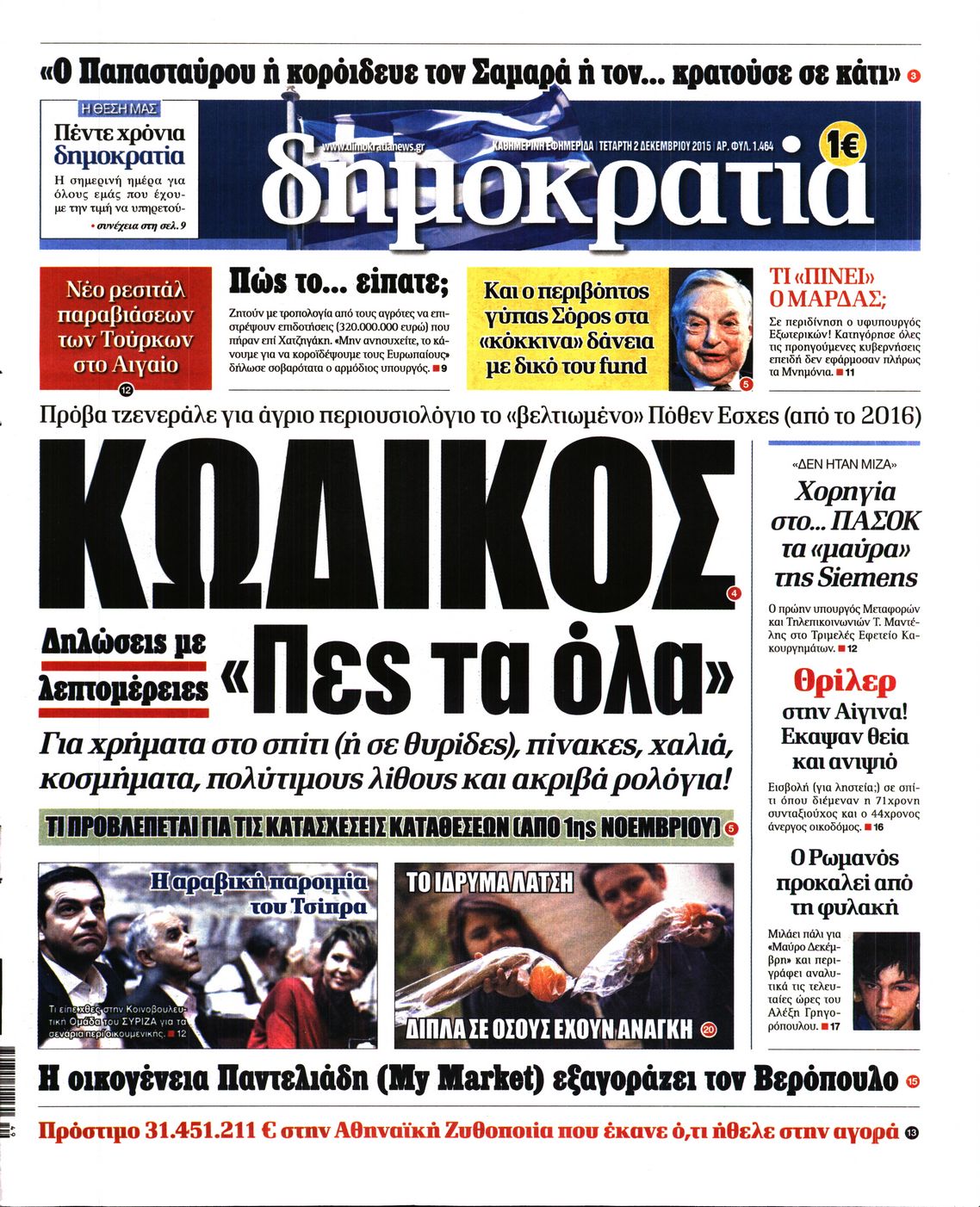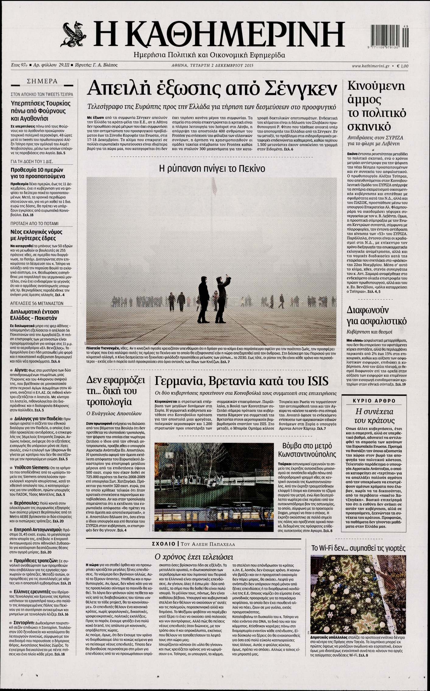 Τετάρτη 2 Δεκεμβρίου 2015
