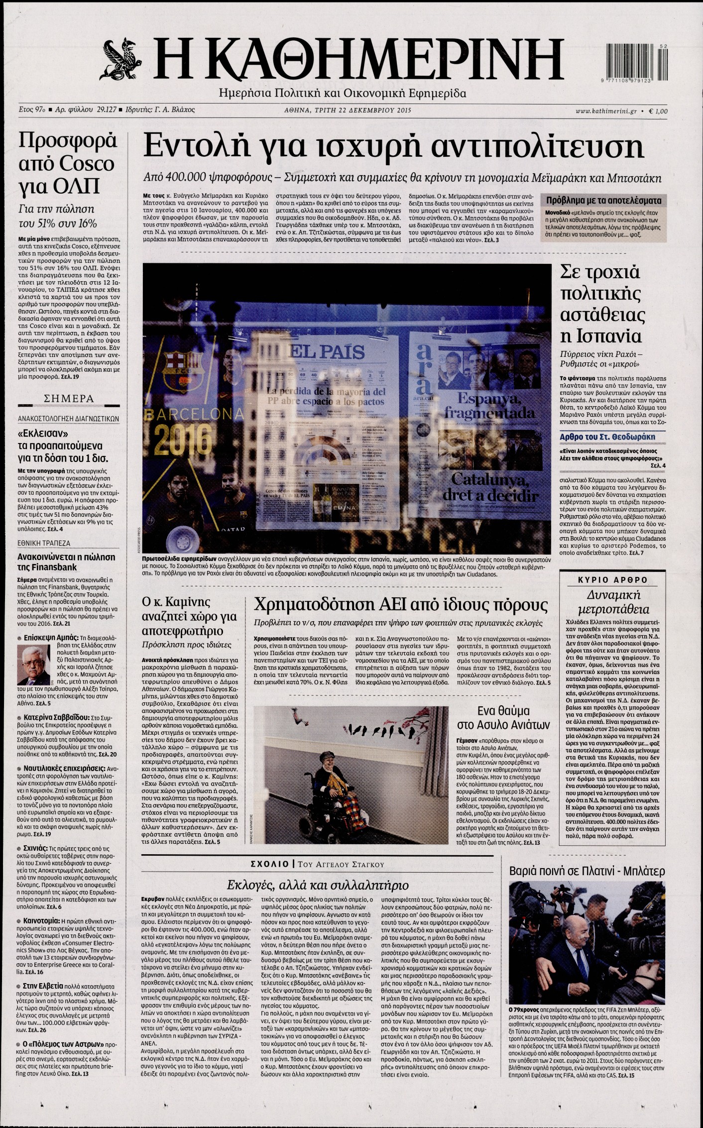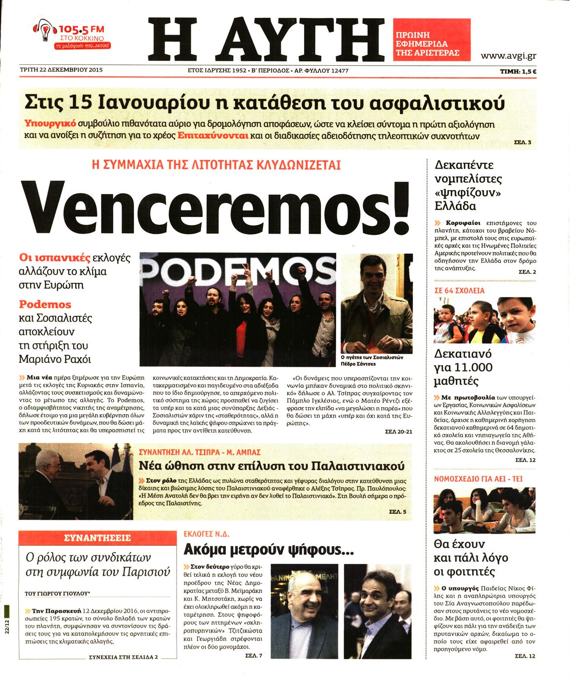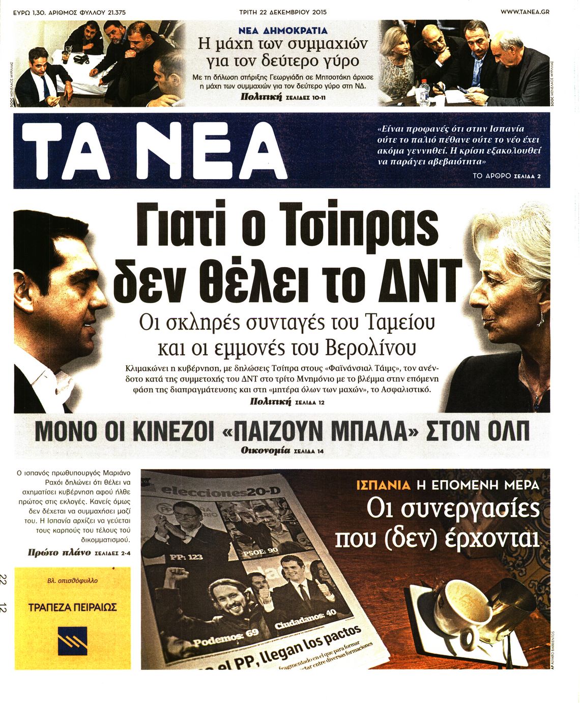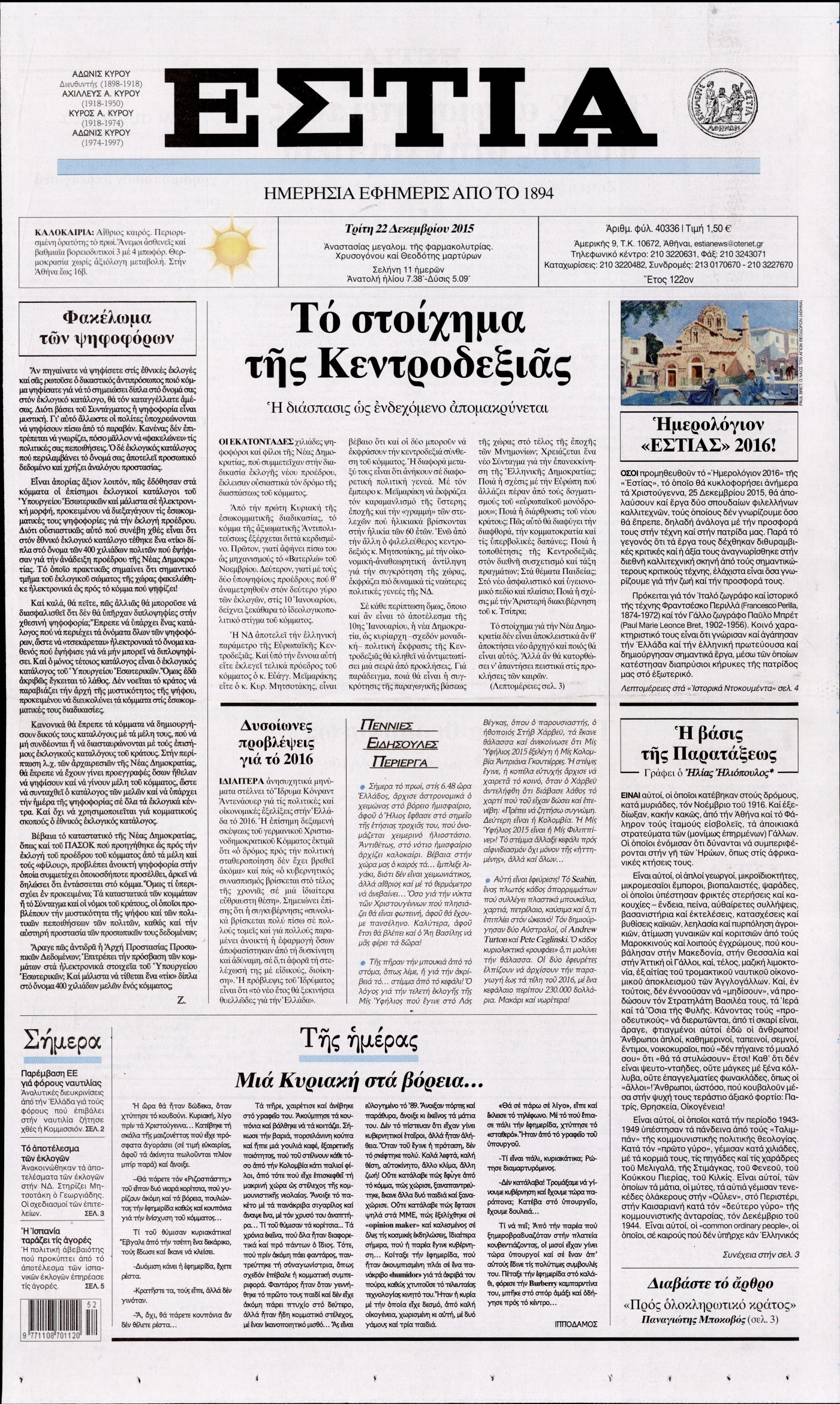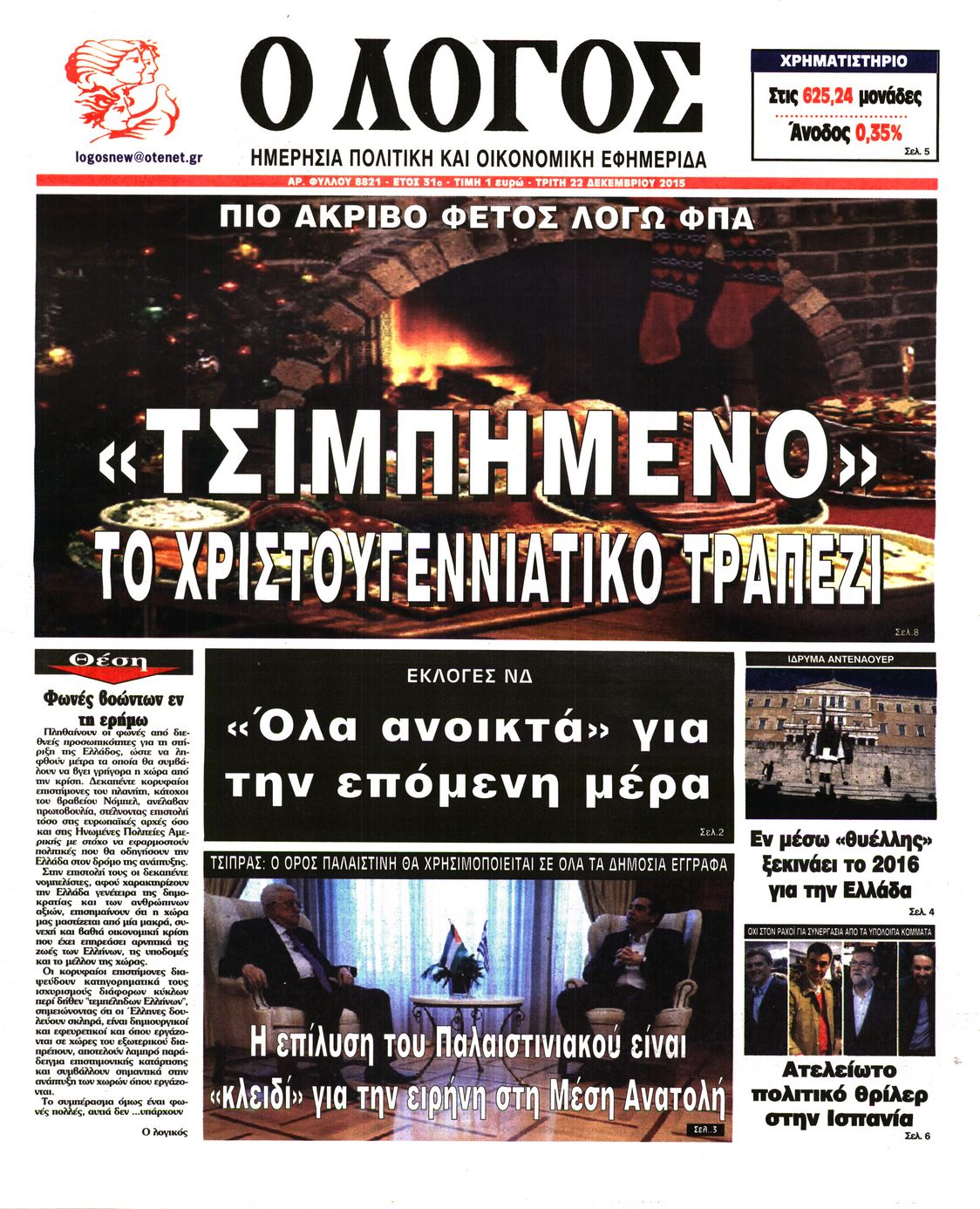 Τρίτη 22 Δεκεμβρίου 2015