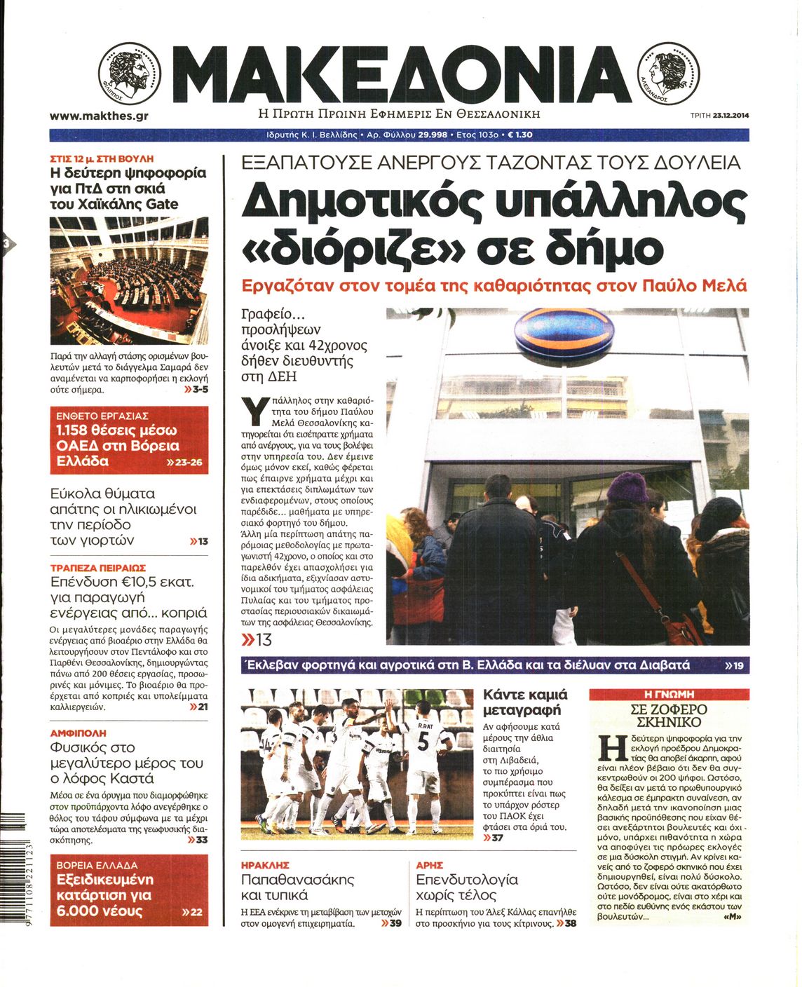 Τρίτη 23 Δεκεμβρίου 2014