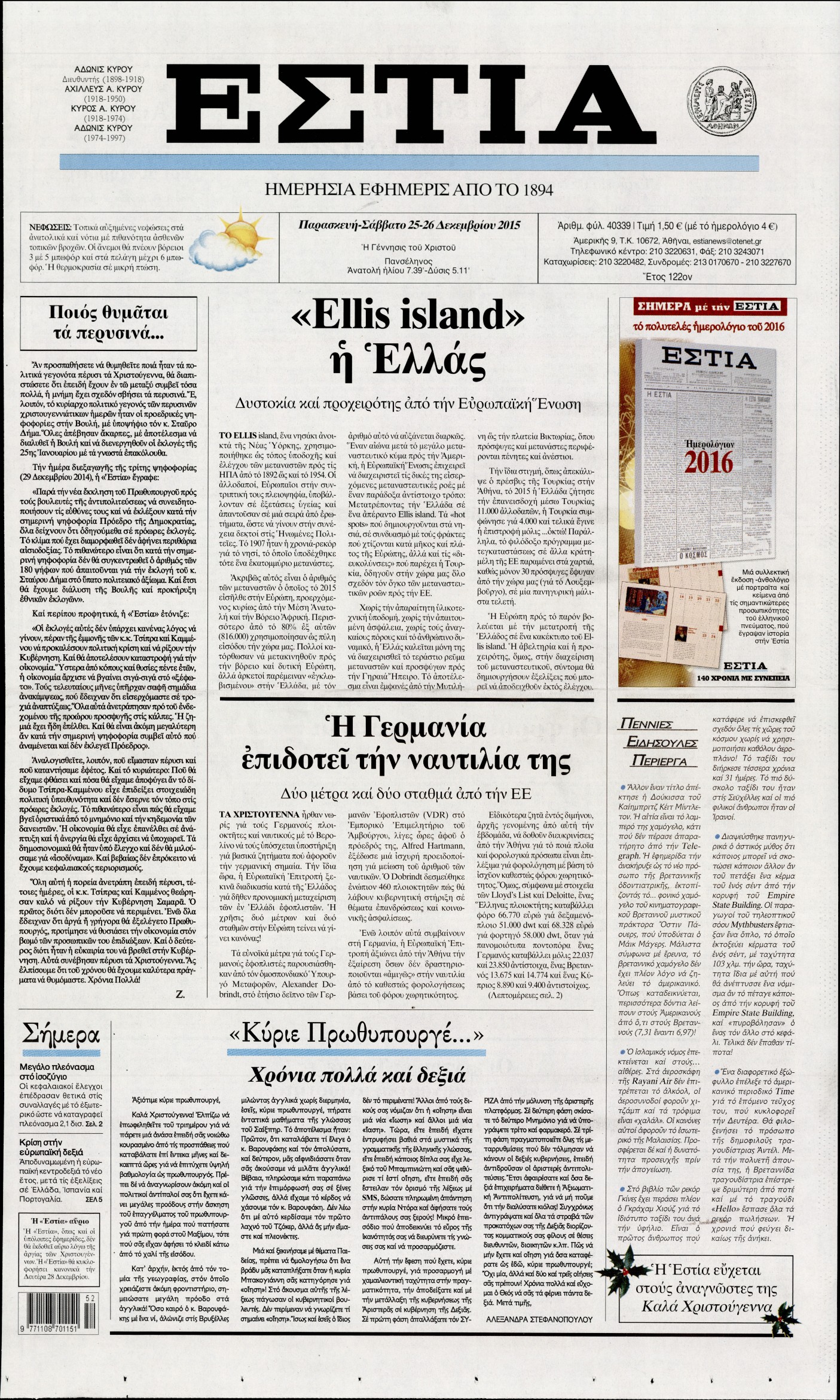 Παρασκευή 25 Δεκεμβρίου 2015