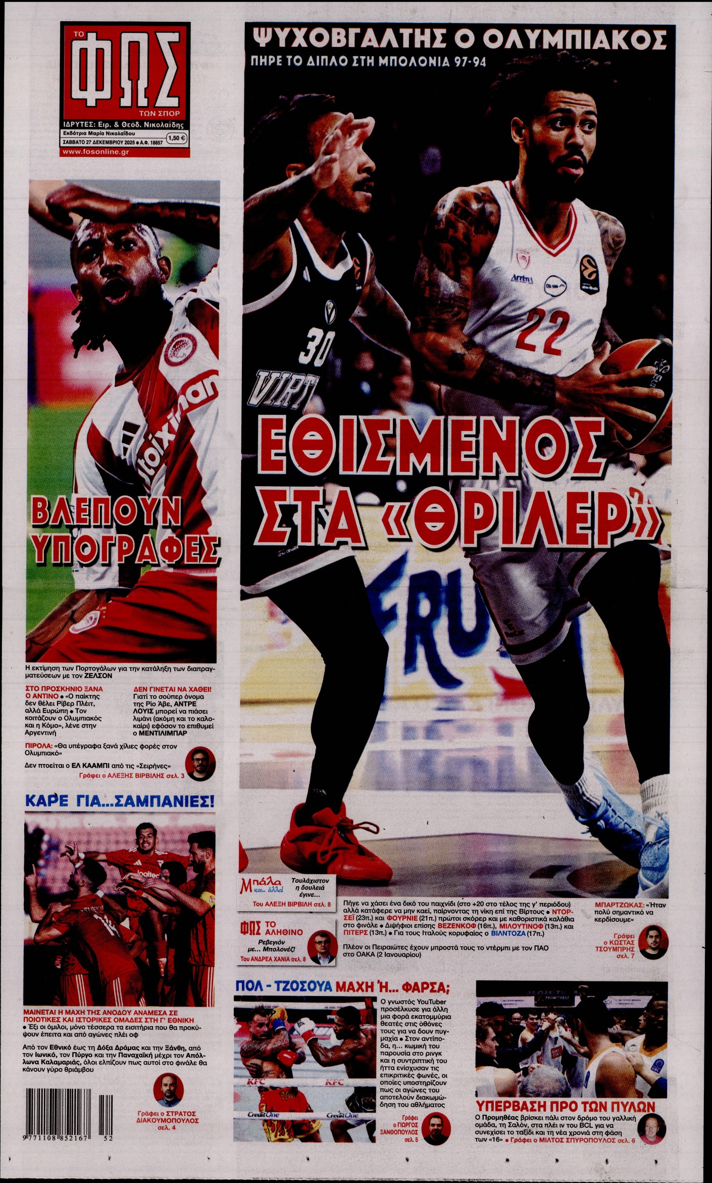 Σάββατο 27 Δεκεμβρίου 2025