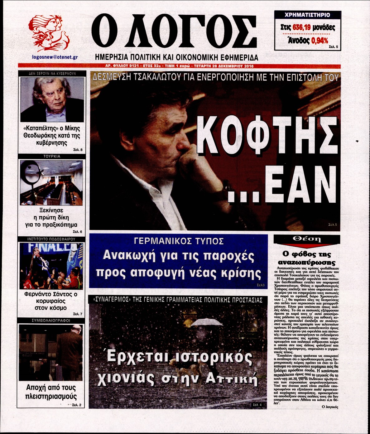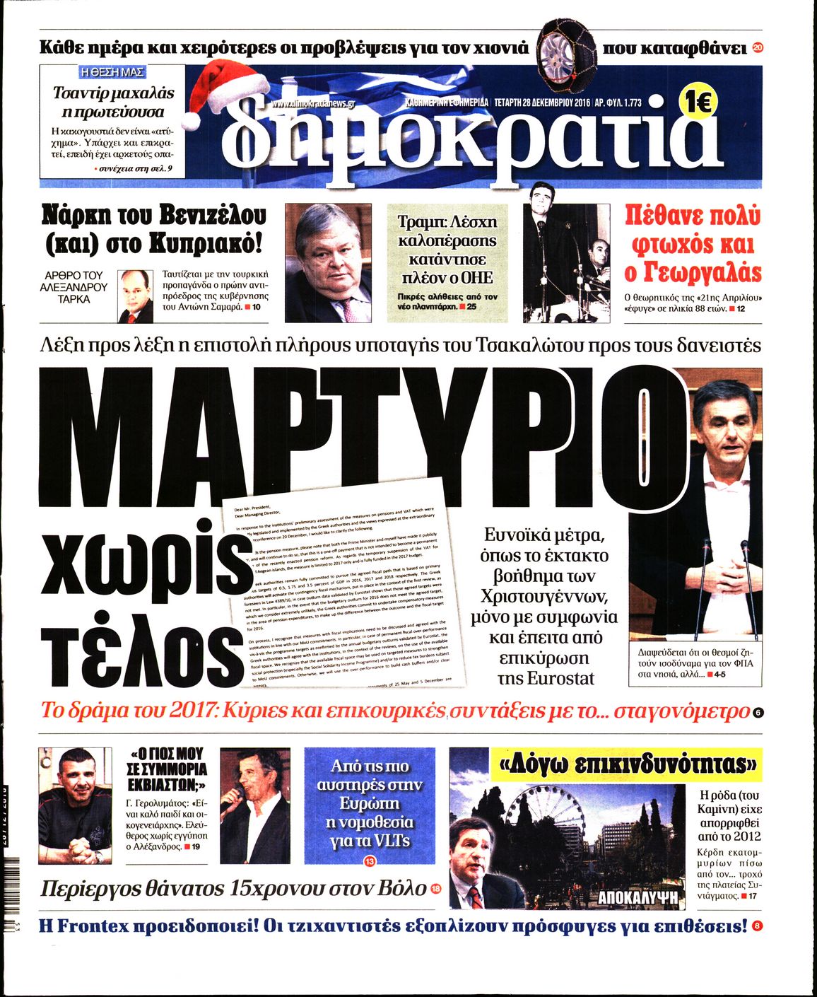 Τετάρτη 28 Δεκεμβρίου 2016