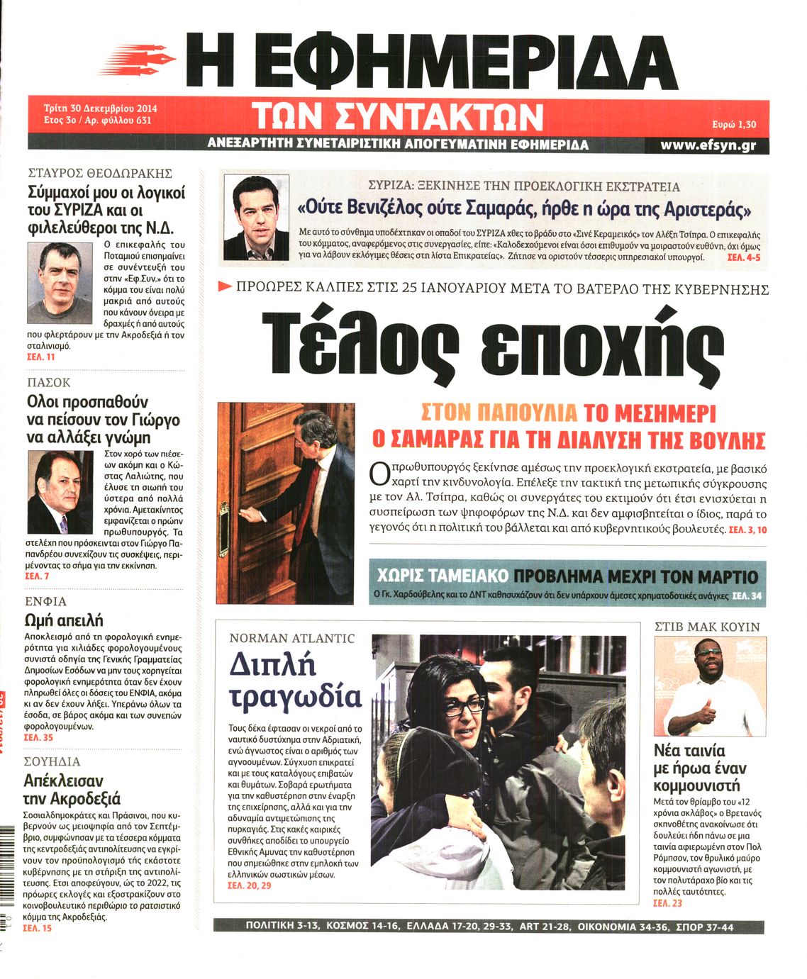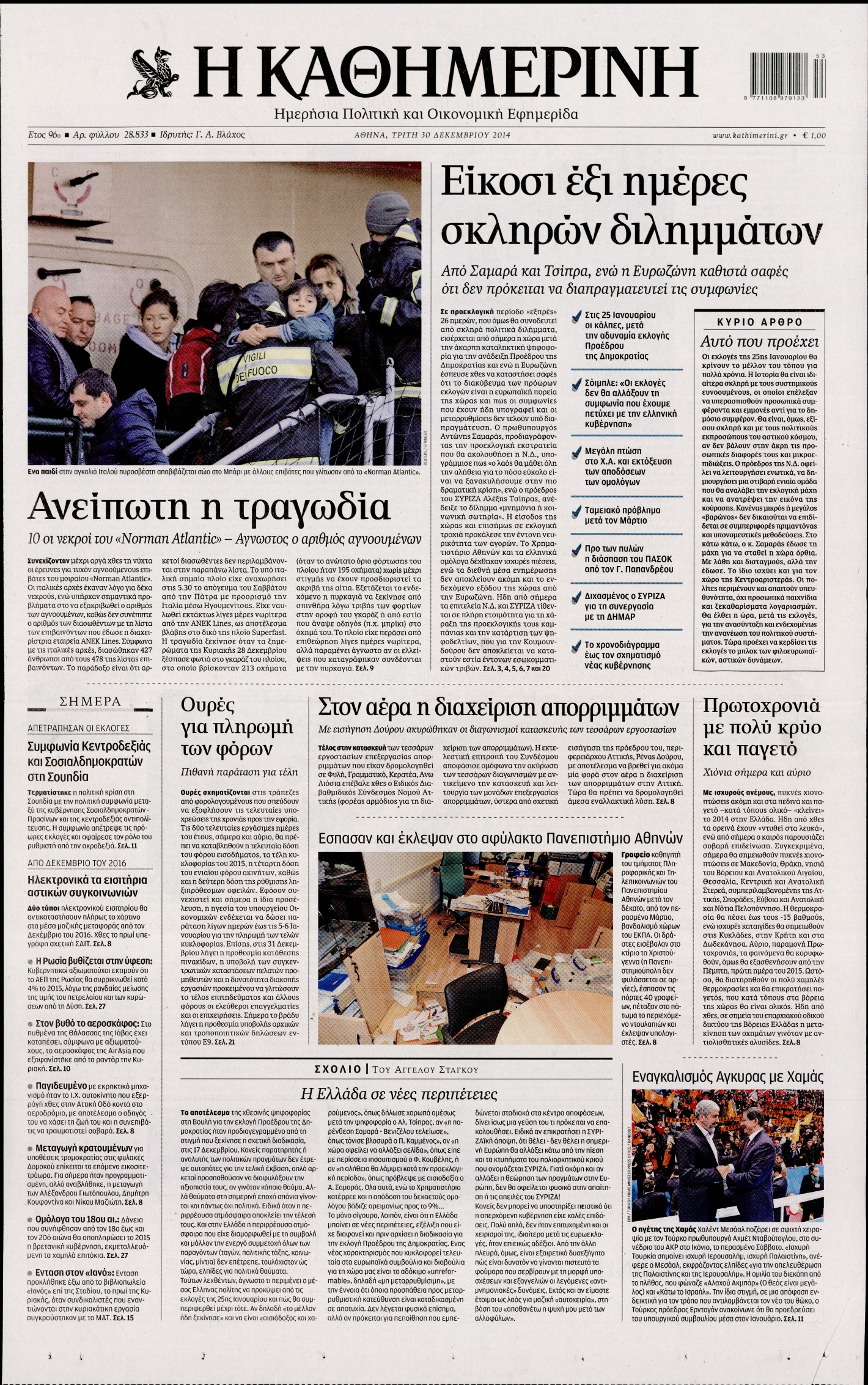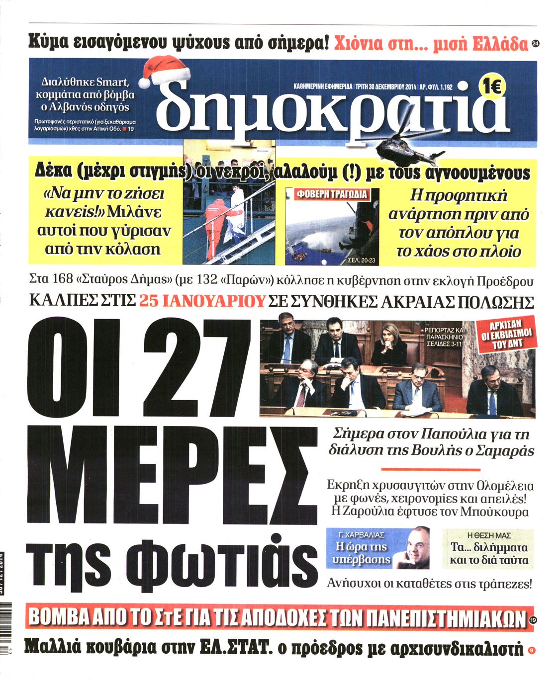 Τρίτη 30 Δεκεμβρίου 2014