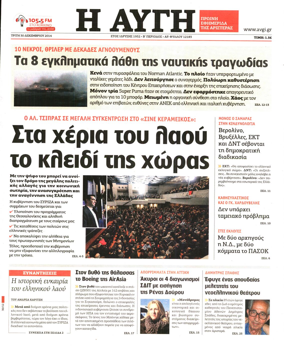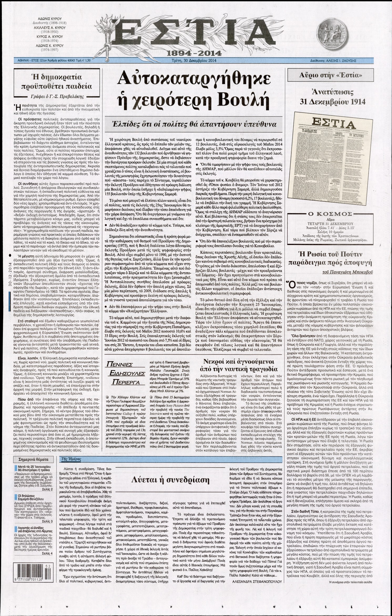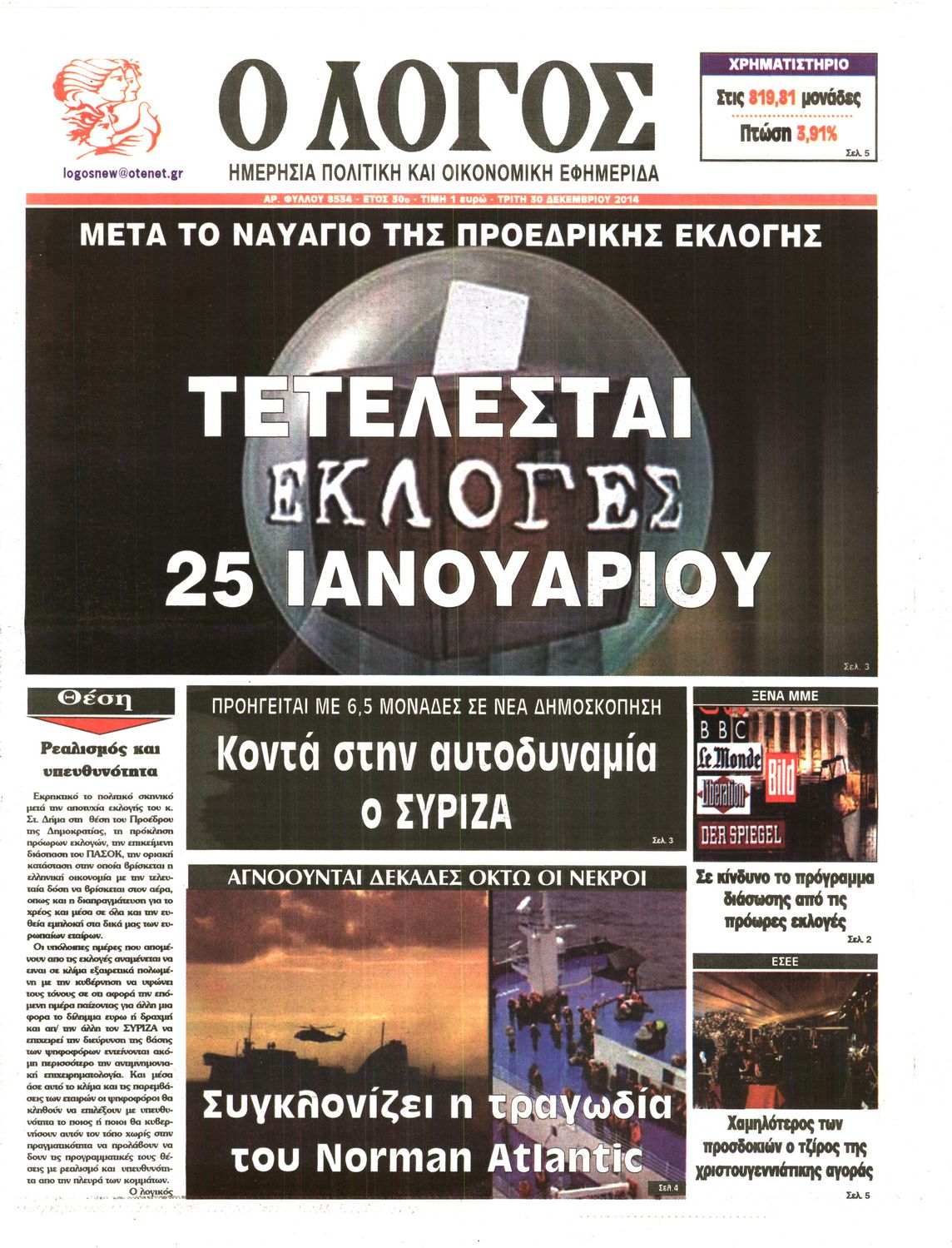Τρίτη 30 Δεκεμβρίου 2014