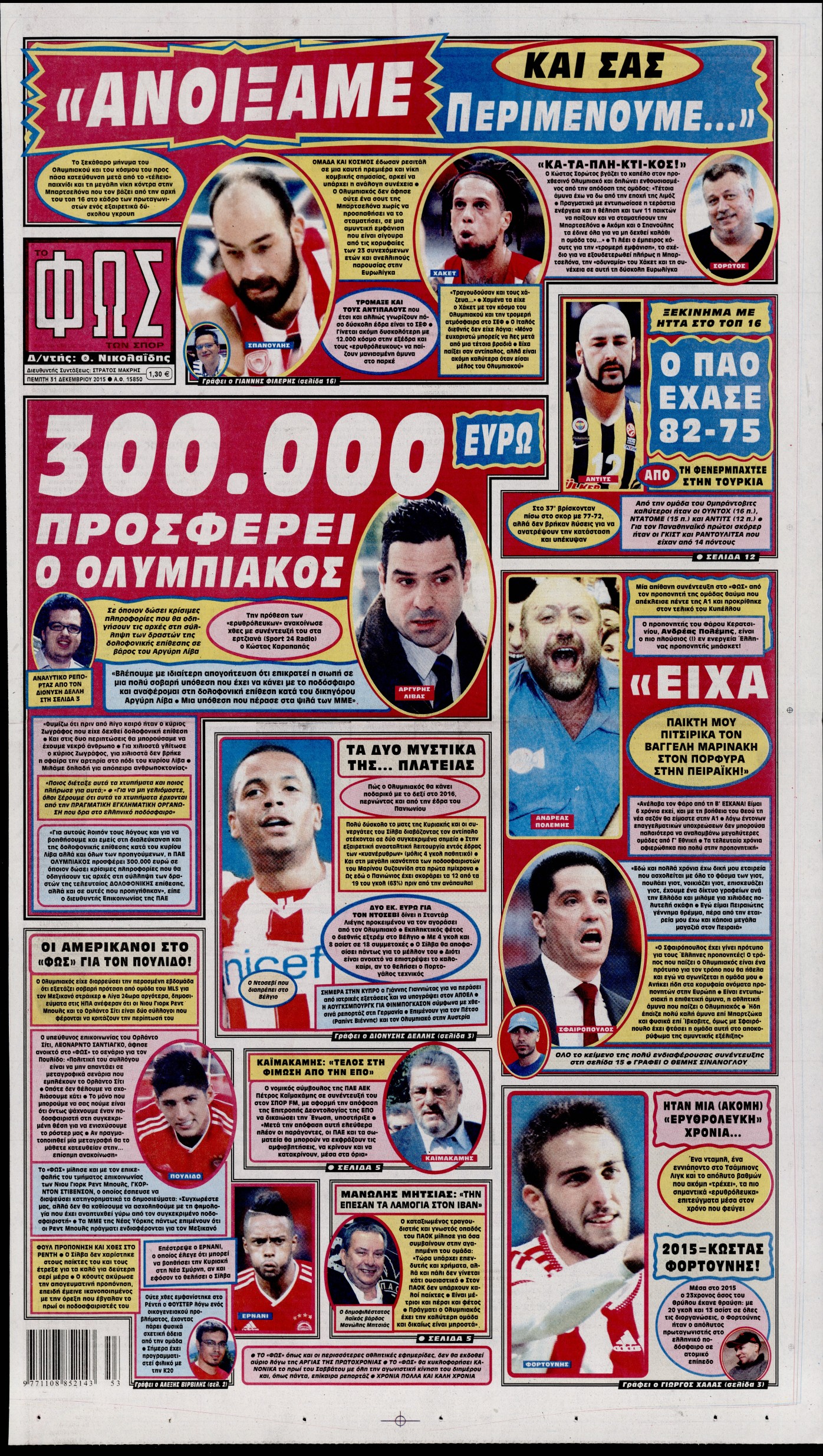 Πέμπτη 31 Δεκεμβρίου 2015