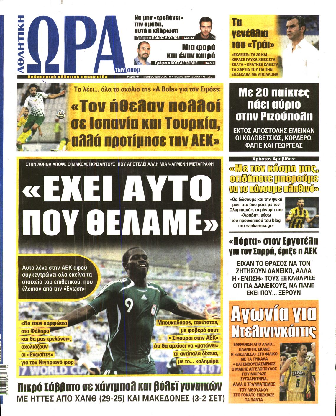 Κυριακή 1 Φεβρουαρίου 2015