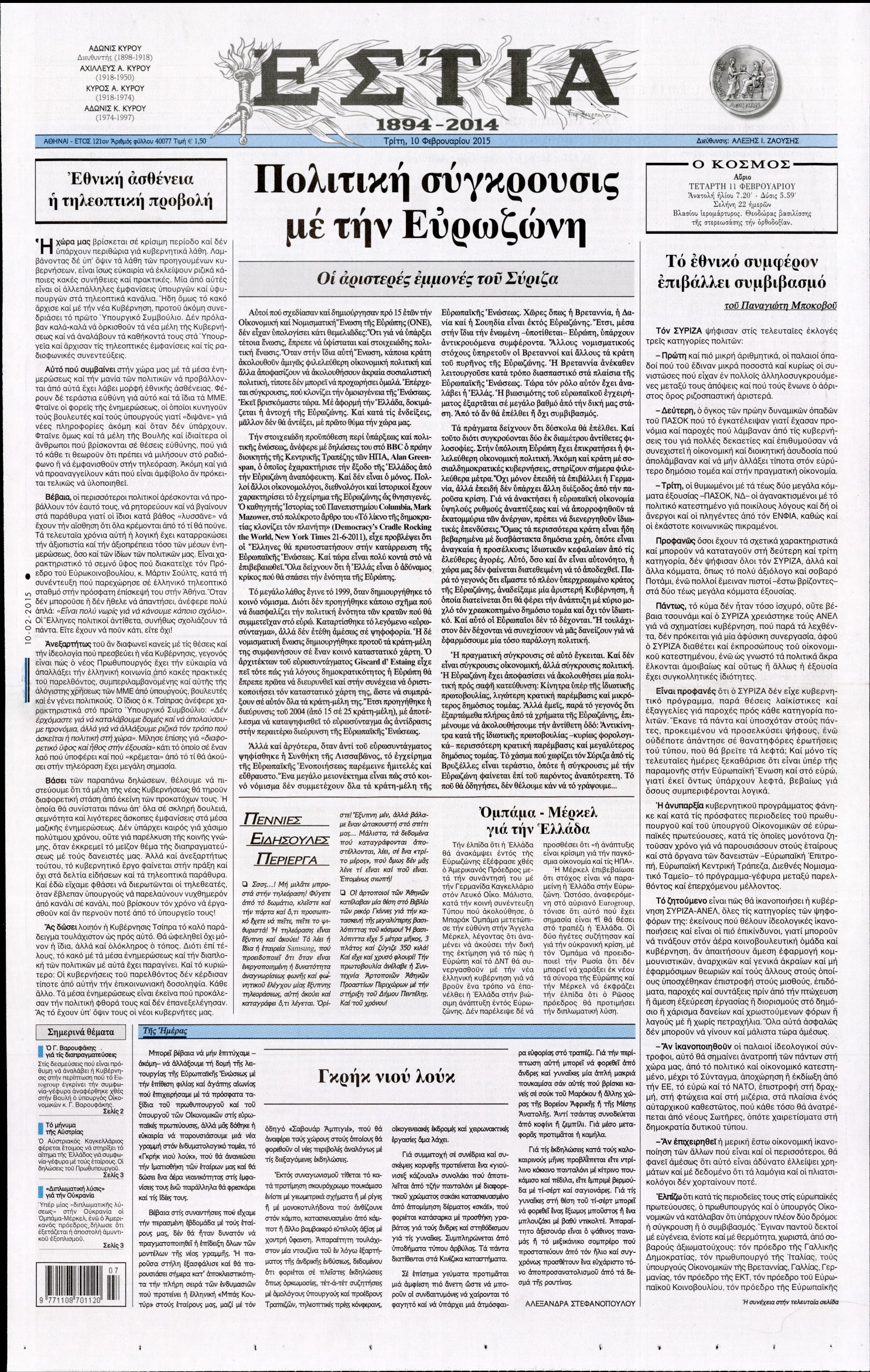 Τρίτη 10 Φεβρουαρίου 2015