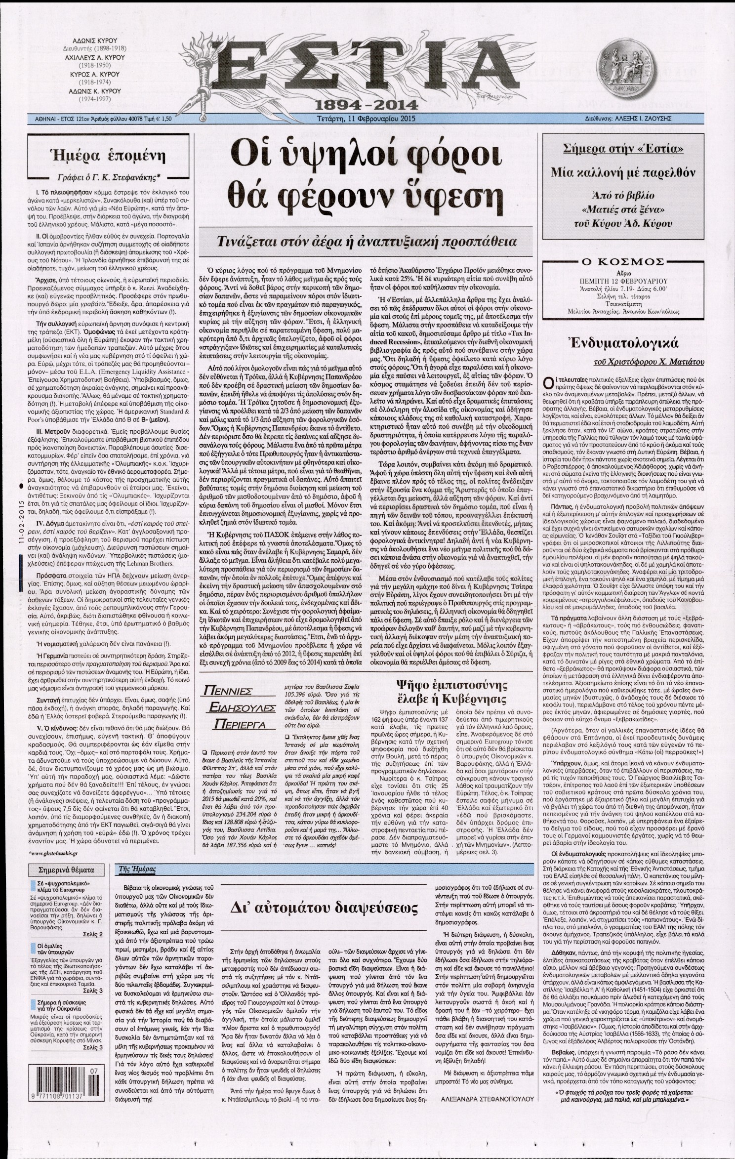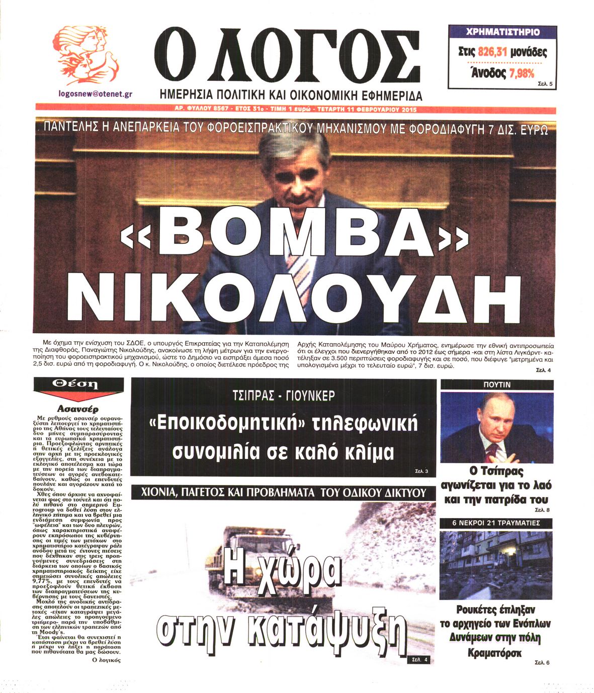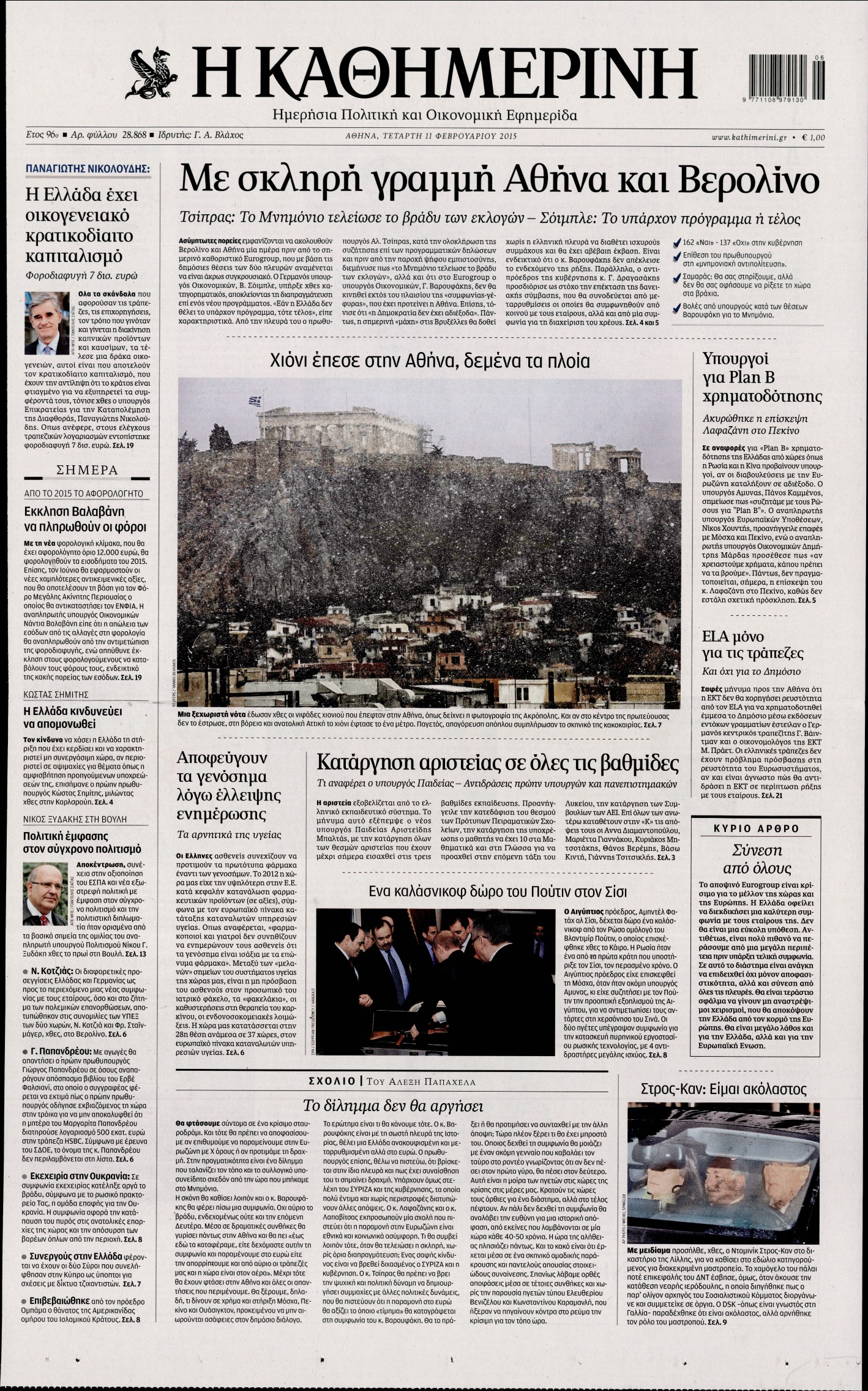Τετάρτη 11 Φεβρουαρίου 2015