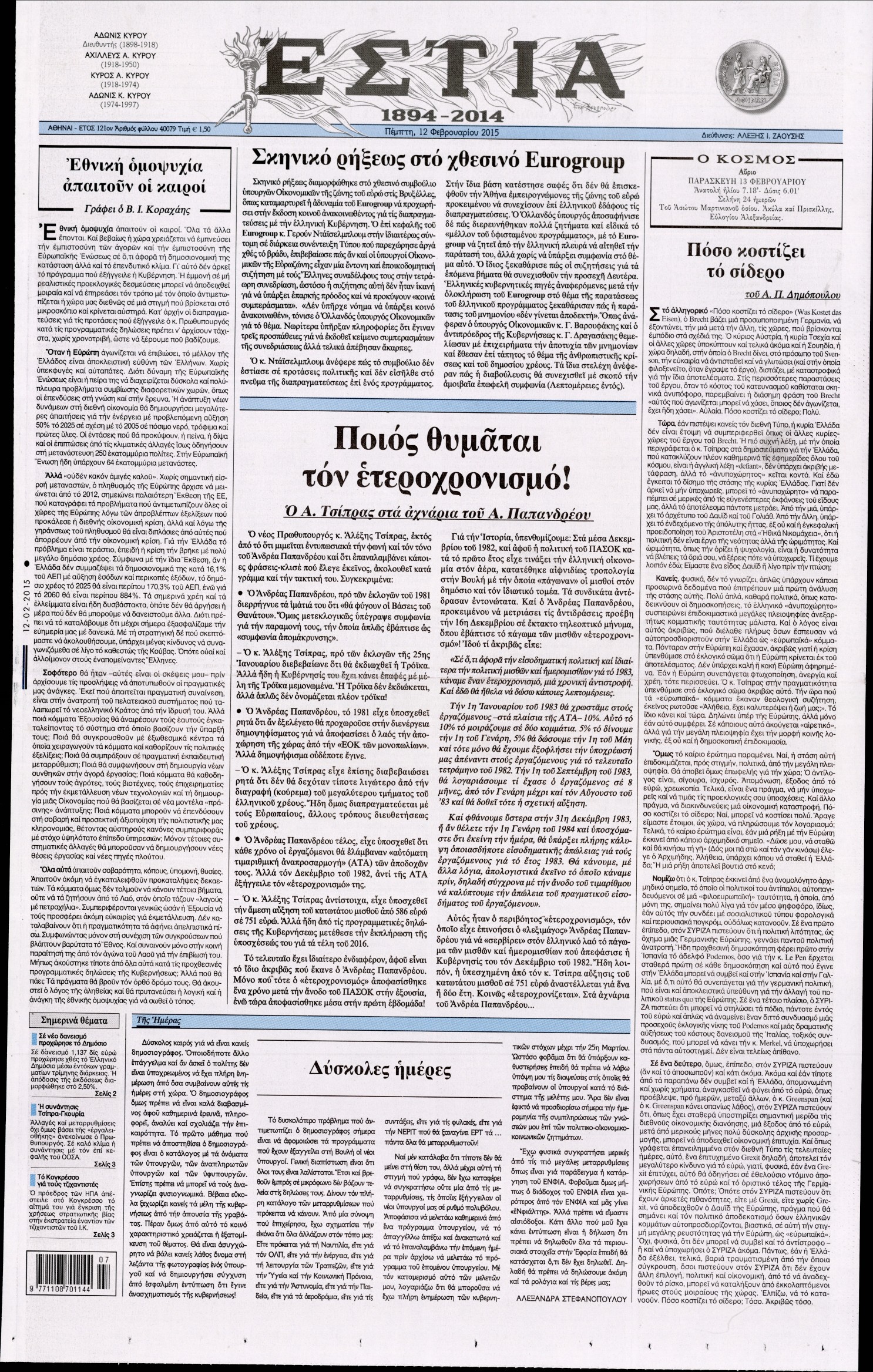 Πέμπτη 12 Φεβρουαρίου 2015