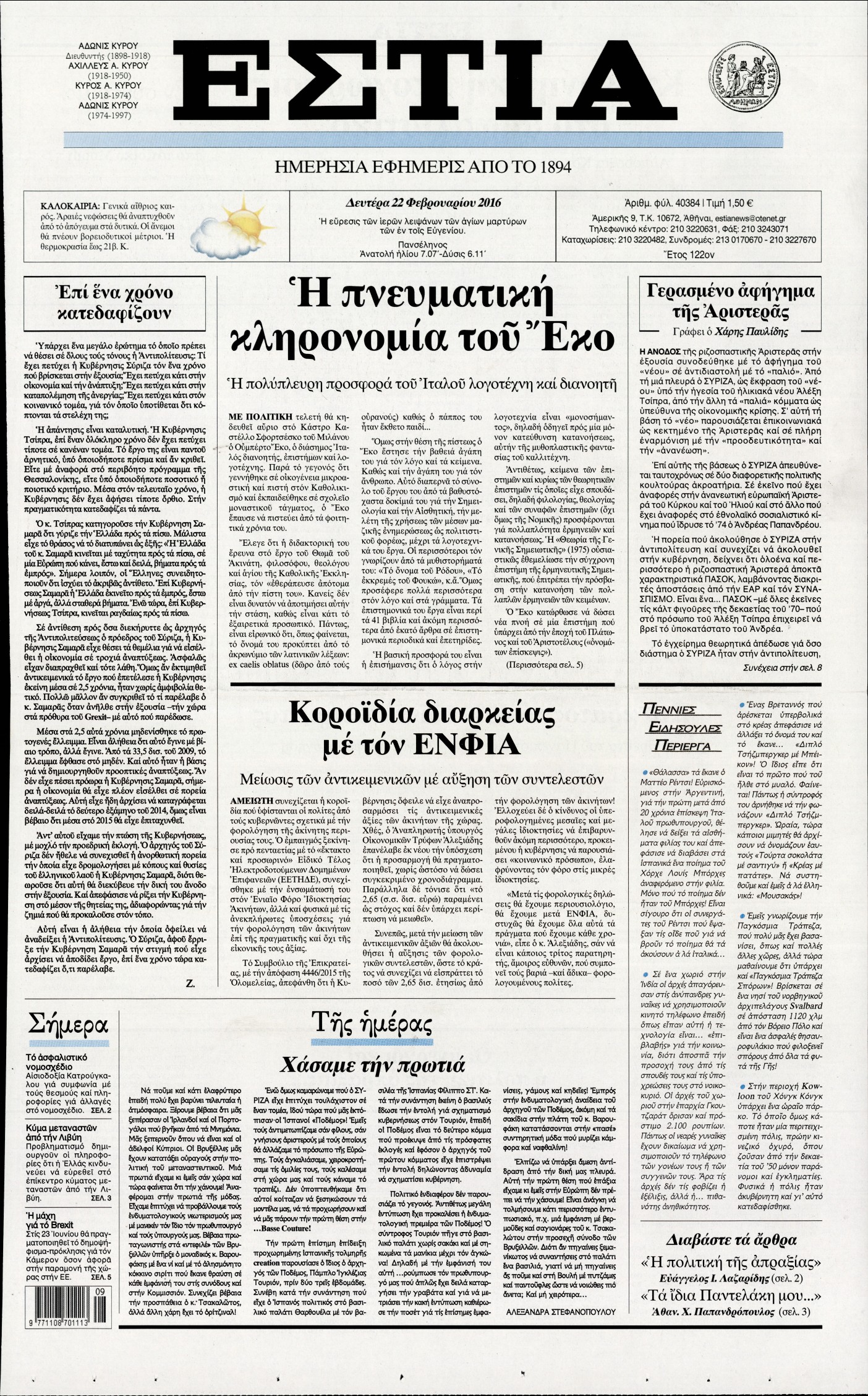 Δευτέρα 22 Φεβρουαρίου 2016