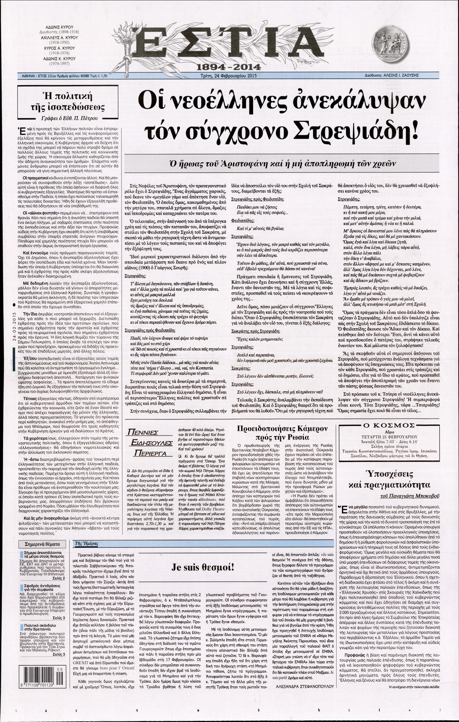 Τρίτη 24 Φεβρουαρίου 2015