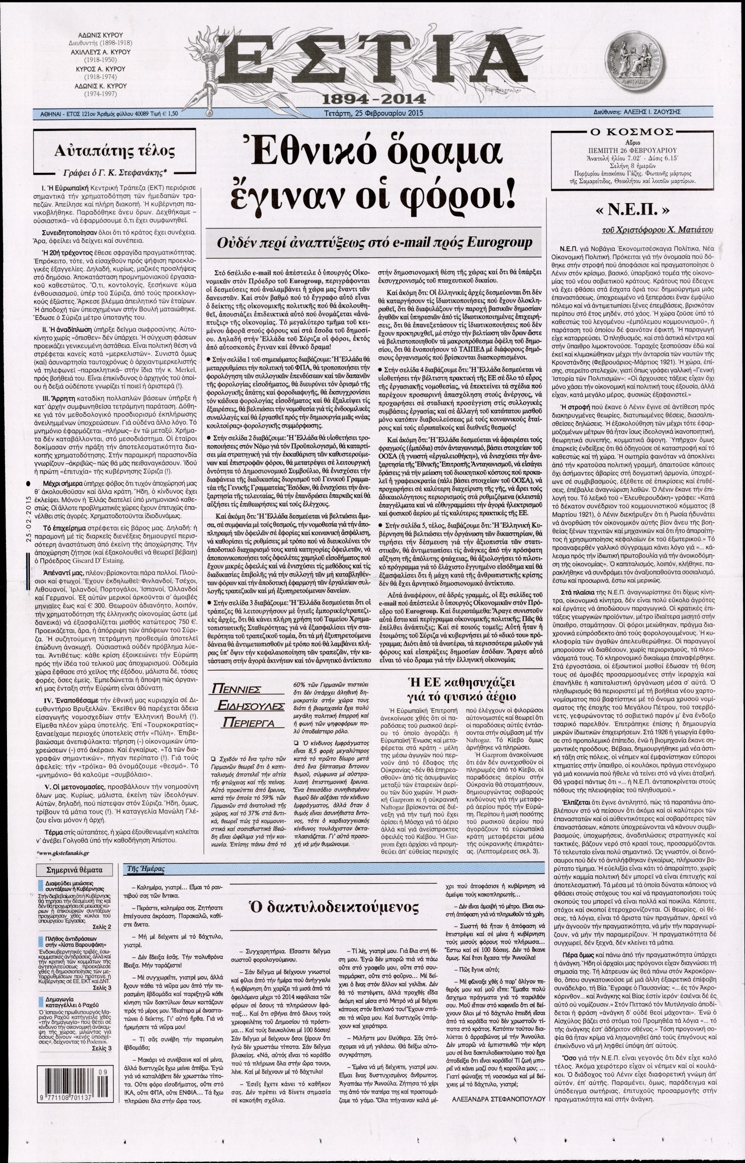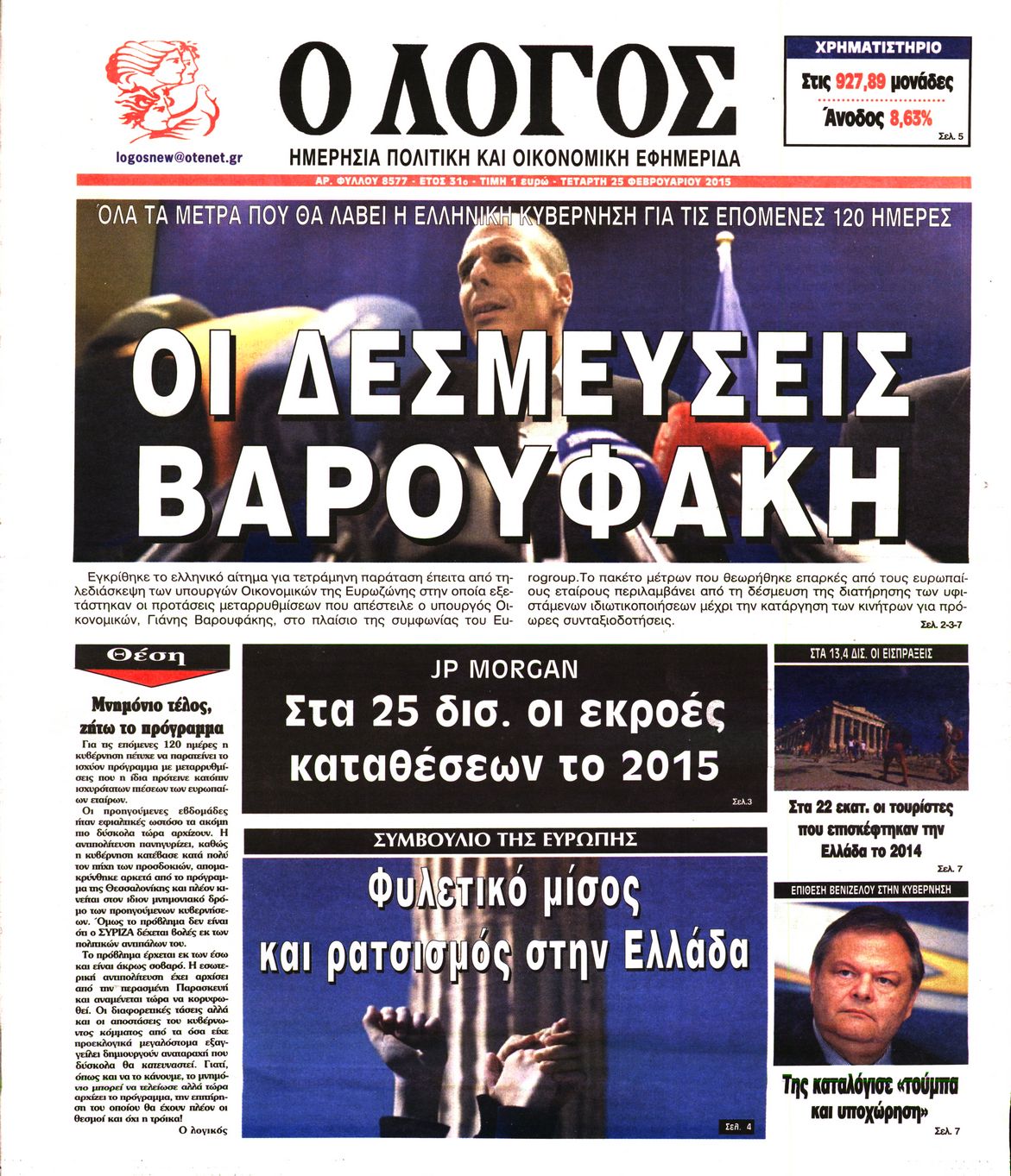 Τετάρτη 25 Φεβρουαρίου 2015