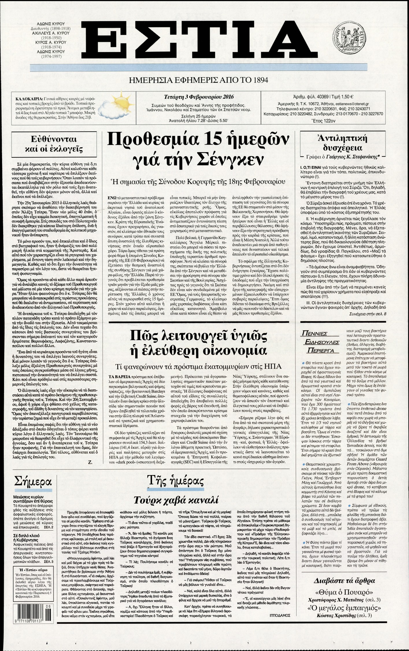 Τετάρτη 3 Φεβρουαρίου 2016